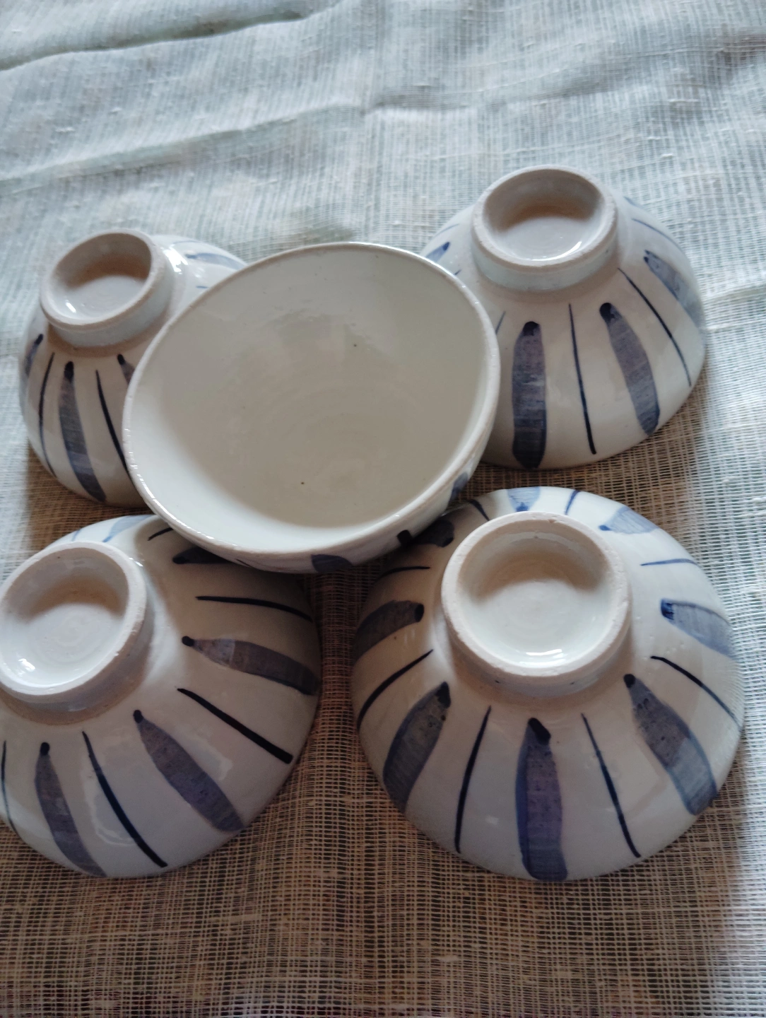 織部焼 エクボ見せるグリーンの湯呑み 3個セット