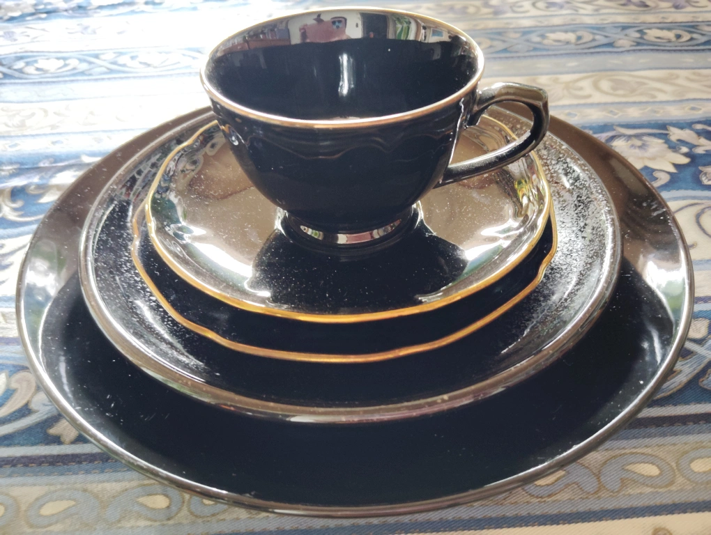 美濃焼 居酒屋我が家、漆黒の花びら舞う小皿 5個セット