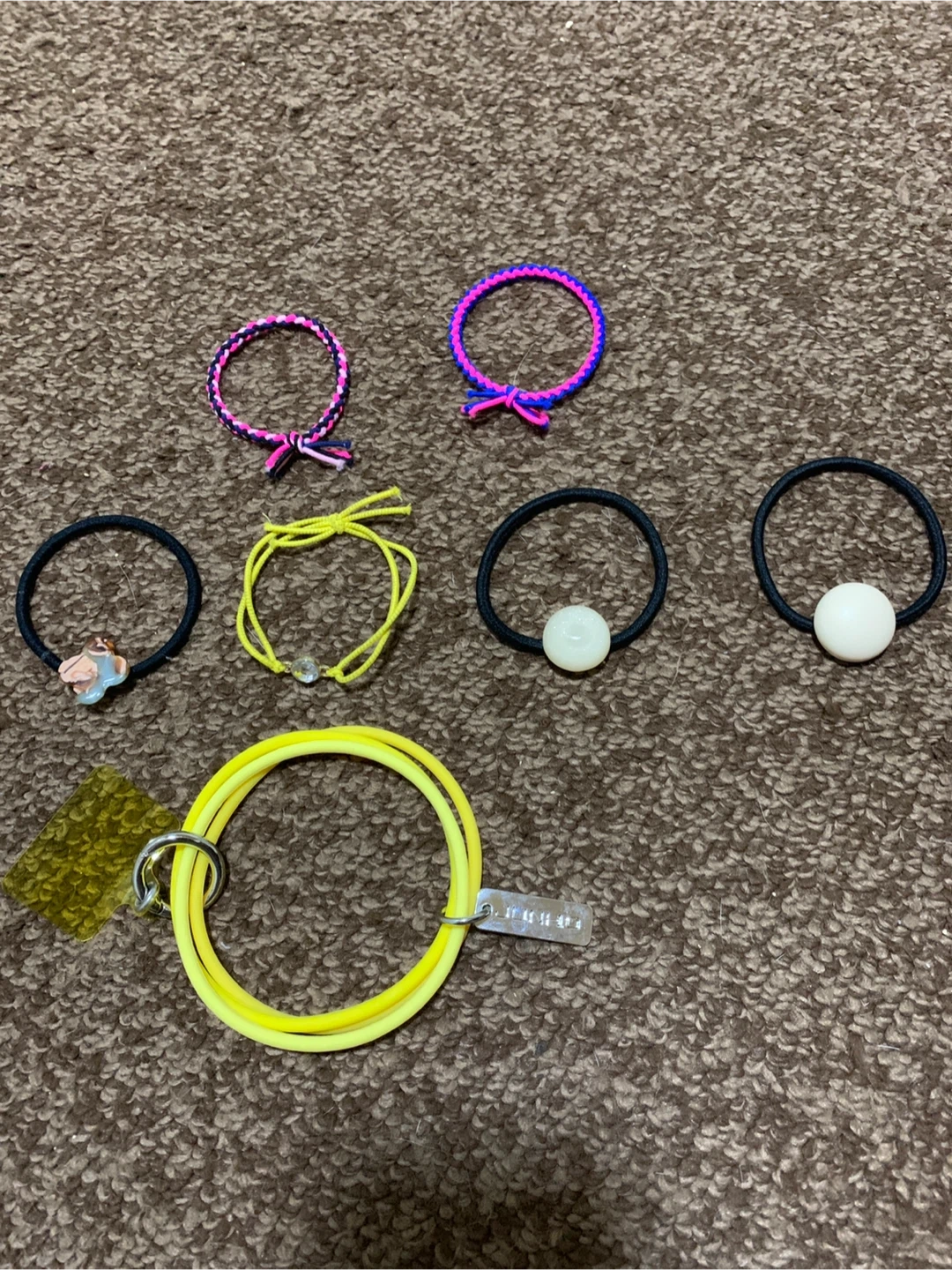 腕輪のまとめ売りです ・色々な種類があります ・全体的にきれい 黄色のは、2PMのジュノのロゴ入りです 何連かになってあるもの 紐のようなものはミサンガみたいな感じです 2列目左のは、静電気防止になってます ご不明点があればお気軽にご連絡ください