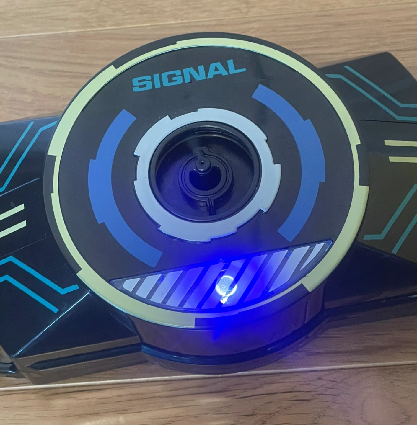 腰に巻いてボタンを押すと自動でシャボン玉が出てきます。 その際、音が鳴り赤青ランプが点灯します。(写真5枚目6枚目) シャボン液は後方のボトルに補充します。(写真3枚目) 男の子なら絶対喜ぶも思い購入しましたが、戦隊モノが好きではない息子は全く興味を示さず1度しか使っていません。 作動確認していますが、子供のオモチャの中古品であることをご了承ください。