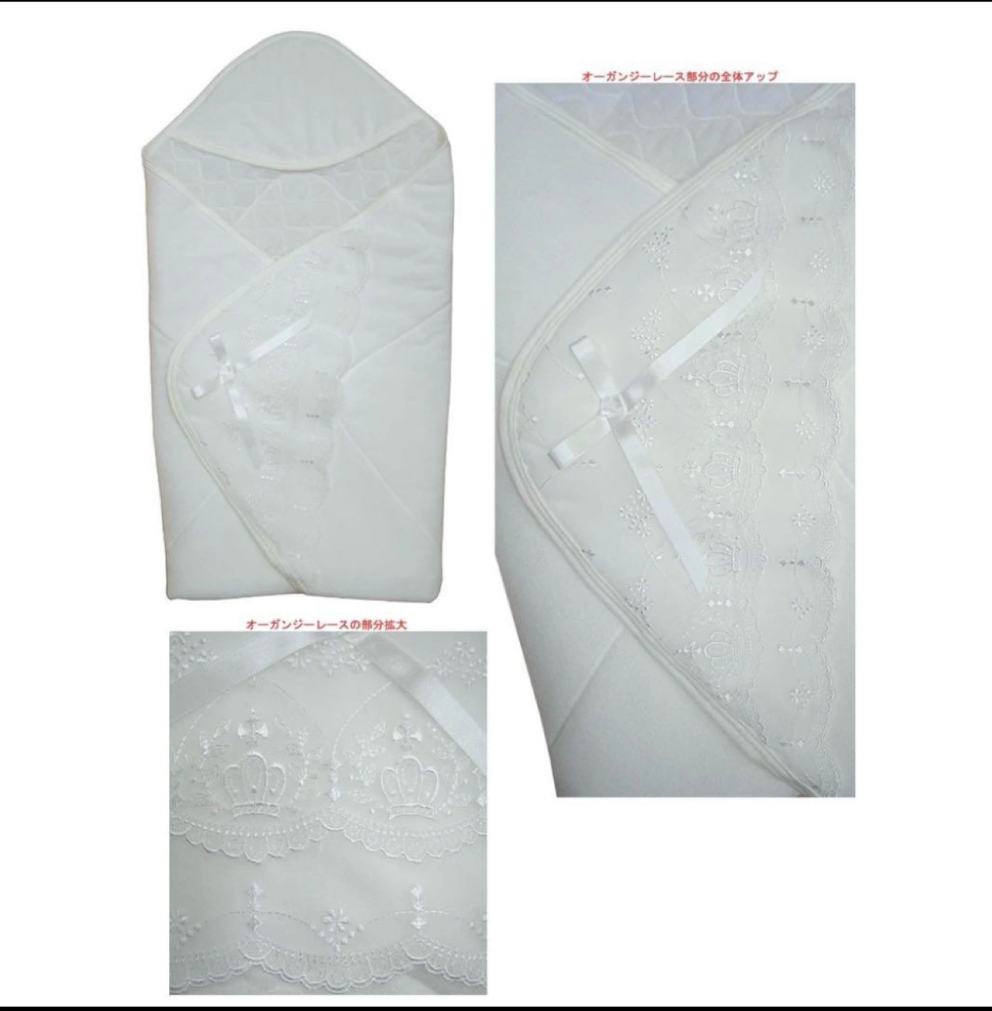 使用回数2-3回です。退院時とお宮参りなどのセレモニー時にお使いいただけます。2枚目の写真に若干黄ばみのような汚れが見られますが、よく見ないとわかりません。 ※別ブランド別売ですが、こちらに合わせて購入したセレモニーロンパースも販売中です✨ 【高品質な素材】 このおくるみは、赤ちゃんの肌に優しい素材で作られており、快適な使用感を提供します。 【美しいデザイン】 刺繍とレース模様が施されており、見た目にも華やかで、特別なギフトにも最適です。 【多用途】 おくるみとしてだけでなく、ブランケットやお昼寝マットとしても使用でき、赤ちゃんの成長に合わせて長くお使いいただけます。 - 色: 白 - 素材: 表 綿80% ポリエステル20% 裏 綿100% 中綿 ポリエステル100% - 装飾: 刺繍(レース模様) - サイズ: 80cm×80cm ご覧いただきありがとうございます。