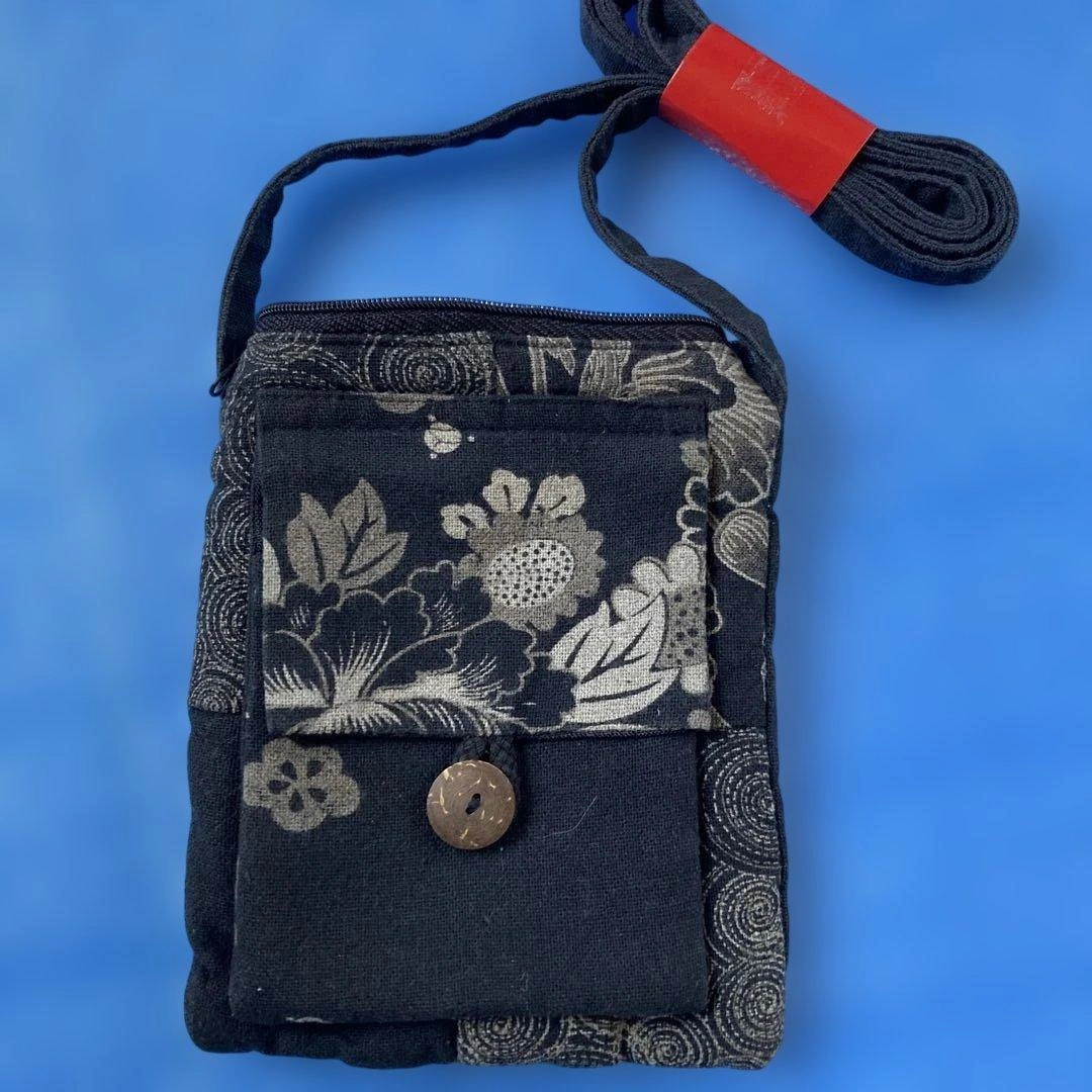 黒と花柄の布製ポシェットです。ポケット付きで便利です。 色: 黒と花柄 素材: 布製 デザイン: ポケット付き、ボタン留め ストラップ: 調整可能なショルダーストラップ 和装にも合うと思います。 サイズは16×14㎝、マチ無しです。 ご希望の方はお気軽にご連絡ください。