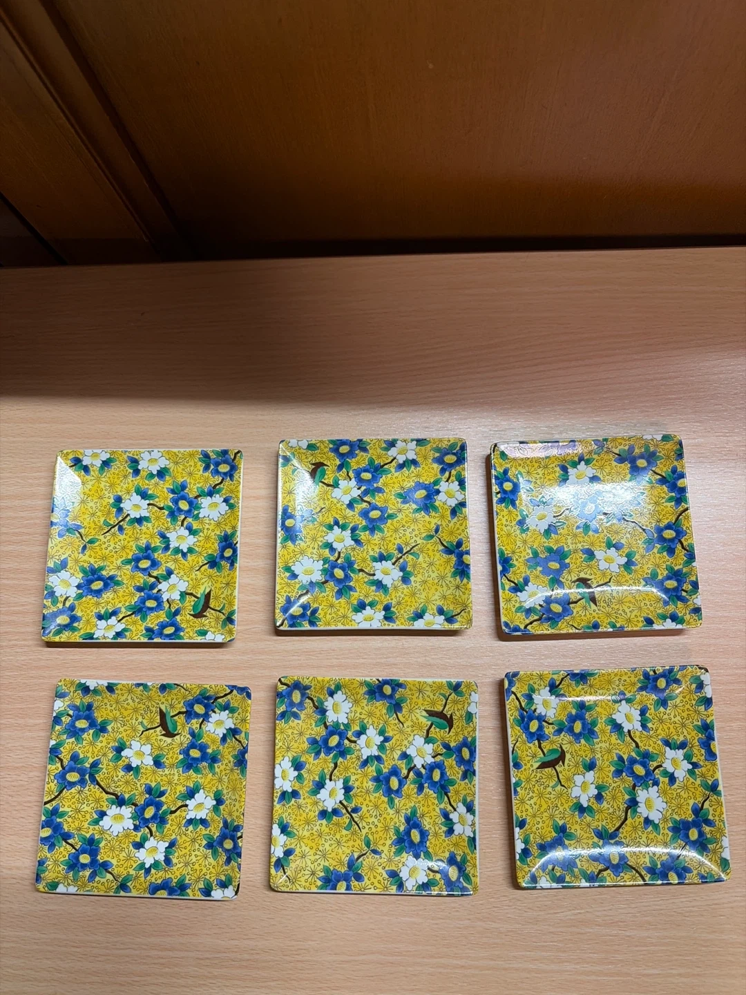 花柄のスクエアプレート6枚セットです。 ・カラー:黄色、青、白 ・状態:使用感少なめ こちらは、少し使用して自宅保管していたので、裏に少し汚れがあらはます。 他にも見えない細かなキズがあるかもしれません。 2枚の写真でご確認いただき こちらが気にならない方 よろしくお願いします。 受け渡し場所は、ローソン港北師岡店の他に 大倉山駅、トレッサ横浜 港北区役所、サミット菊名店、菊名駅も 可能ですので、ご相談ください。 中古品であることご了承ください