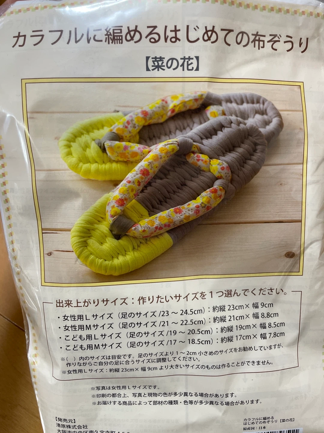 菜の花の布ぞうりキットです 【情報】 ブランド:菜の花 カテゴリ:布ぞうりキット 【サイズ】 ・女性用Lサイズ(足のサイズ/23~24.5cm):約縦23cm×幅9cm ・女性用Mサイズ(足のサイズ/21~22.5cm):約縦21cm×幅8.8cm ・こども用Lサイズ(足のサイズ/19~20.5cm):約縦19cm×幅8.5cm ・こども用Mサイズ(足のサイズ/17~18.5cm):約縦17cm×幅7.8cm 中古品であることご了承ください