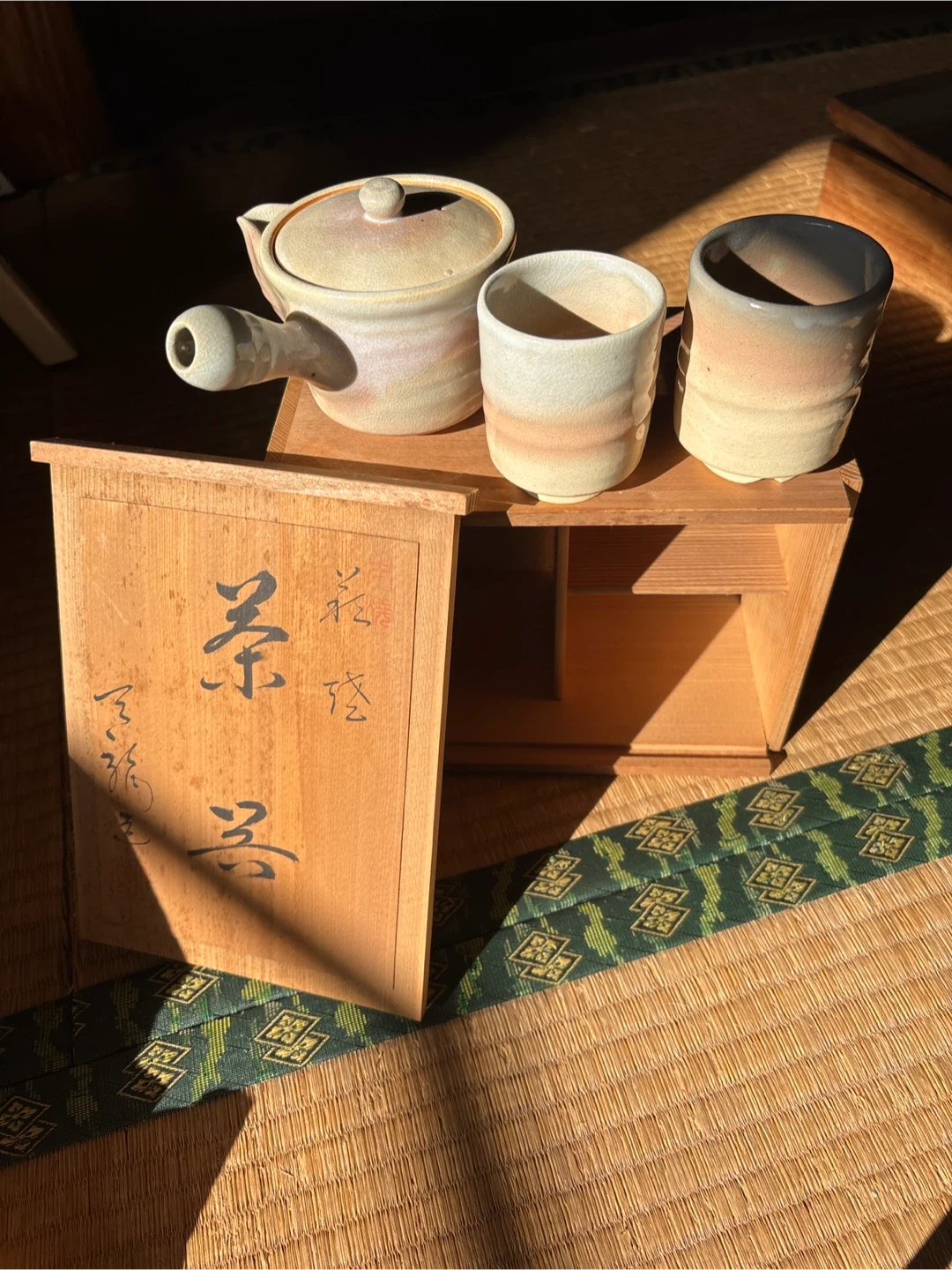 萩焼茶器 木箱入り 急須 湯呑みセット