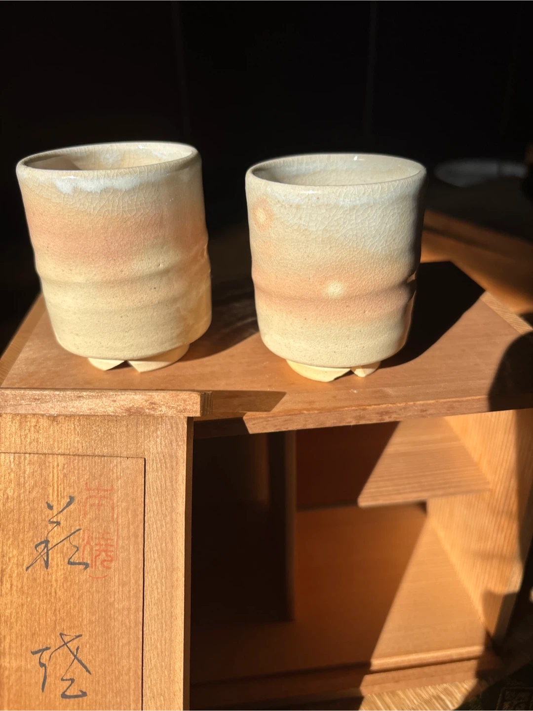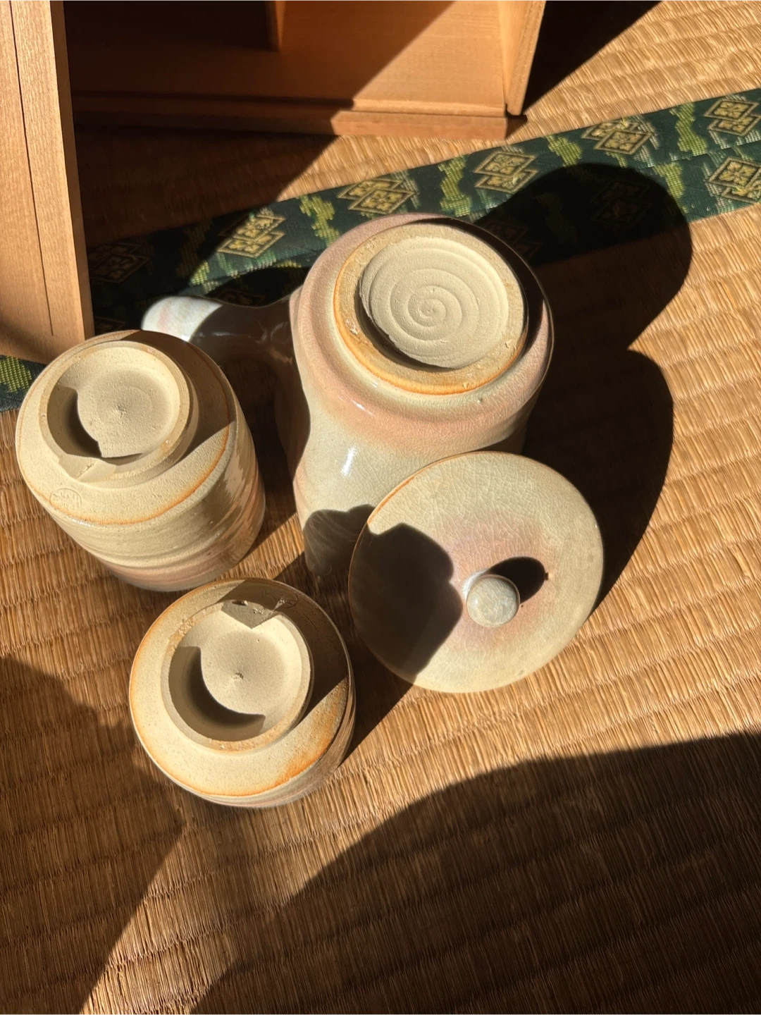 萩焼の茶器セットです。 長期間自宅にて保存されていました。 木箱などに汚れがありますが、中に入っていた急須、湯呑み茶碗は薄紙に包まれていたため新品同様の美品です。 画像検索で調べてみたところ、 市場価格は3,000円から6,000円程と確認しました。 ・急須1個 ・湯呑み2個 ・木箱入り ・ 中古品であることをご了承ください。