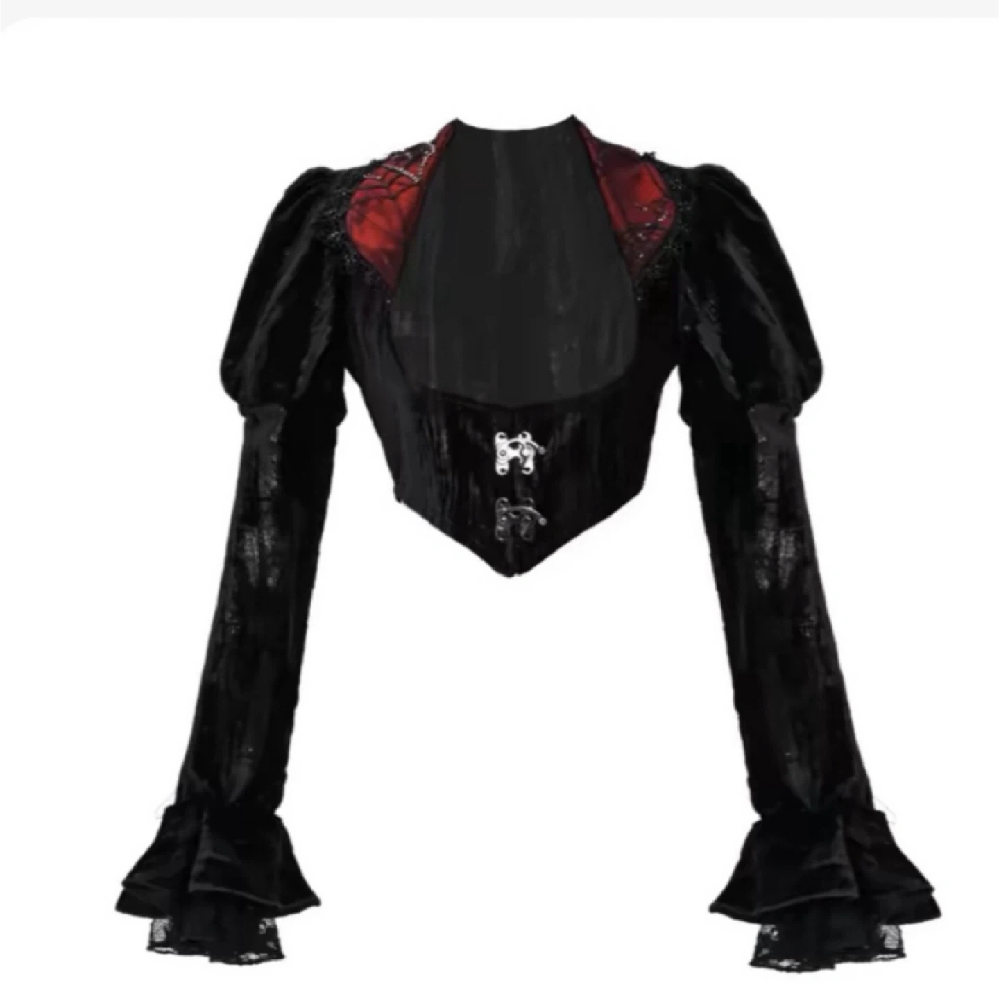 新品アウターのみ。 サイズ:バスト:97cm長さ:45-47cm袖口:19-23cm イロ:赤x黒色 #ゴシック #ロリータ  #ゴシックロリータ #ヴィンテージ #クラシックロリータ #やみかわ #ゆめかわ #天使 #悪魔 #量産系 #地雷系 #姫系 #y2k #パンク #ホラー #ハロウィン #華ロリ #和ロリ #甘ロリ #ゴスロリ #コスプレ #イベント服
