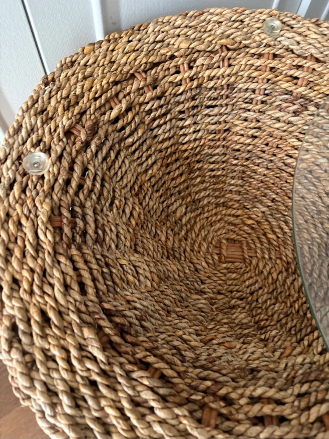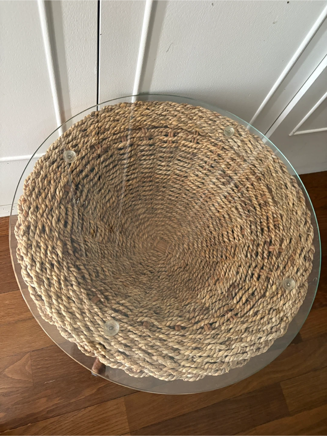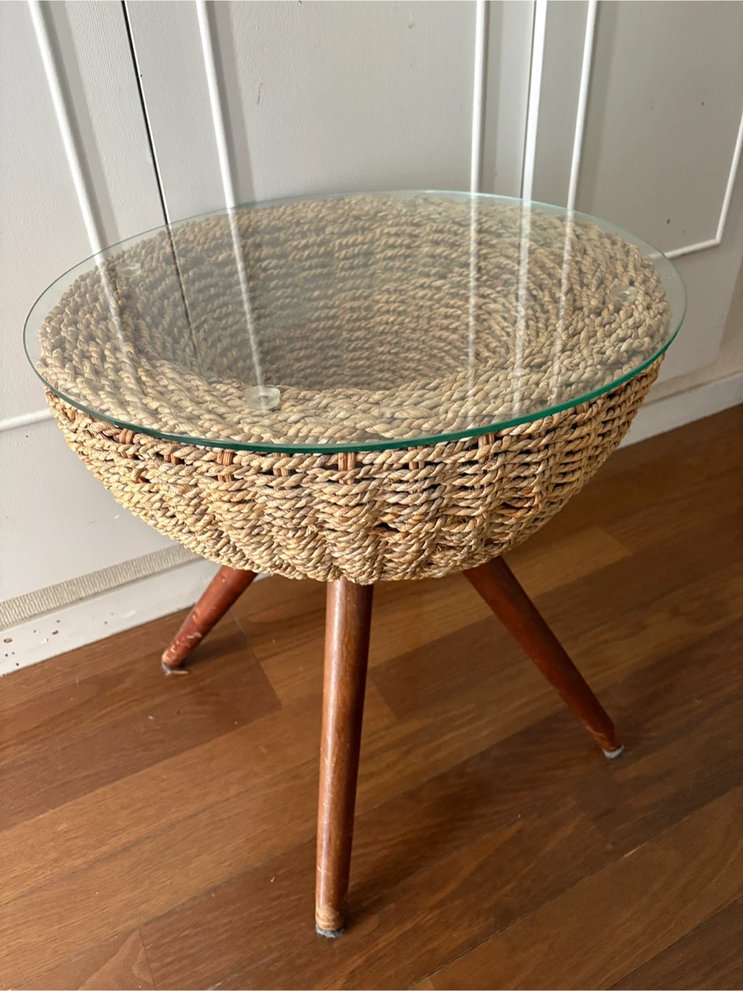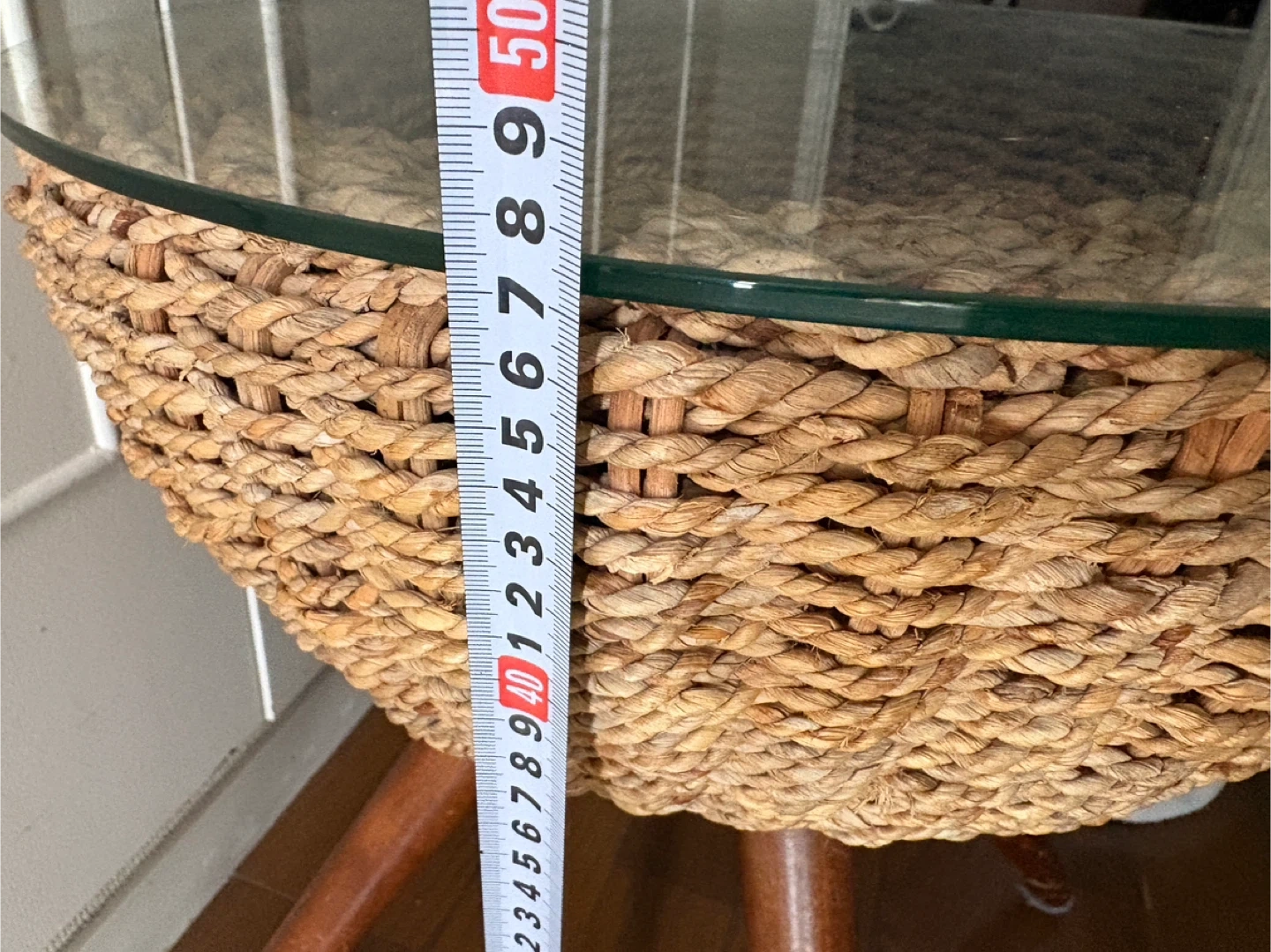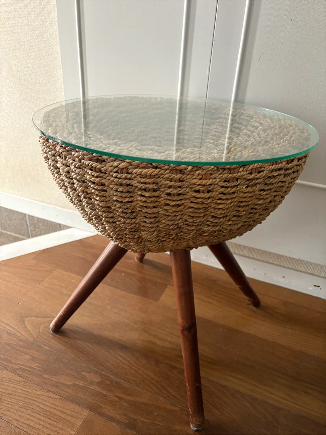 昔、自由が丘に店舗があった、アジアン家具のお店、karacoの籐のサイドテーブルです。 天板がガラスで、中に物を入れて飾れるサイドテーブルです。貝がらや、エアプランツ、ドライフラワーやぬいぐるみなど、お好みでアレンジできます。 ナチュラルな雰囲気で気に入っていましたが、手狭になり手放すことにしました。 足の部分は写真の通り傷があります。 また、籐の部分、1箇所ほどけてしまい、穴があります。こちらを壁側にして設置頂けたら、あまり気にならないかと思います。 ・高さ:約50cm ・天板:ガラス ・脚:木製 ・使用感、キズあり 中古品であることご了承ください。 プロフ一読お願いします。 引き渡し場所も、良くご確認ください。 三軒茶屋駅より距離があり、徒歩かバスになります。