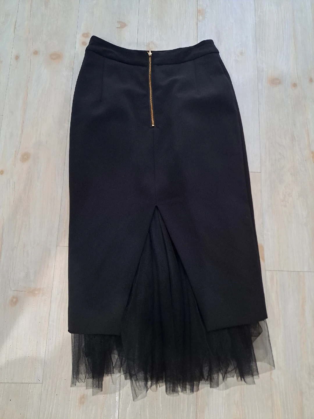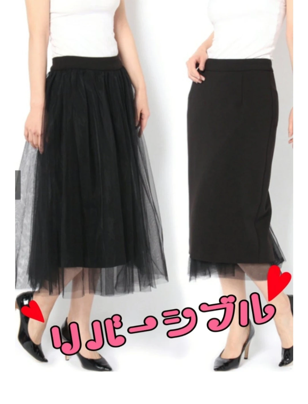 試着のみ、美品! 平置き31センチ(多少の前後はあるかと思います) ブランド記載サイズ0 ブラック リバーシブルで着られるとても便利で可愛いスカートですよ 値段も割りと高かったので生 地も高級感がありしっかりとしています 気分とシーンに合わせて着回せるので重宝すると思います 1枚で2役の万能スカート 写真4枚目のようにチュールがスリットから出るので尻尾みたいで可愛いですよ 購入したものの着る機会がなく試着したのみでした