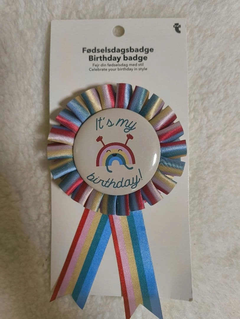 虹とメッセージが特徴の誕生日バッジです。 - デザイン: 虹と「It's my birthday!」のメッセージが描かれたバッジ - カラー: 多色(青、ピンク、黄色など) - 素材: リボンとプラスチック - サイズ: 直径約8cm(バッジ部分) - 用途: 誕生日のお祝い用バッジ ご覧いただきありがとうございます。 ご希望の方はお気軽にご連絡ください。