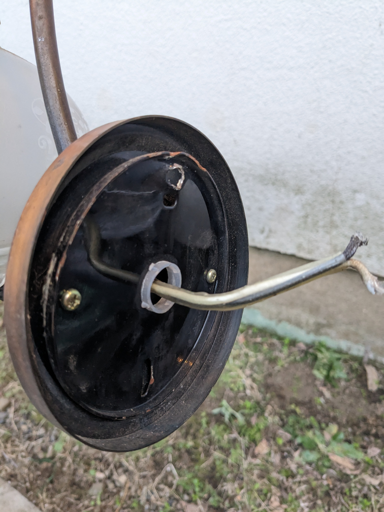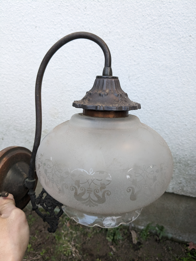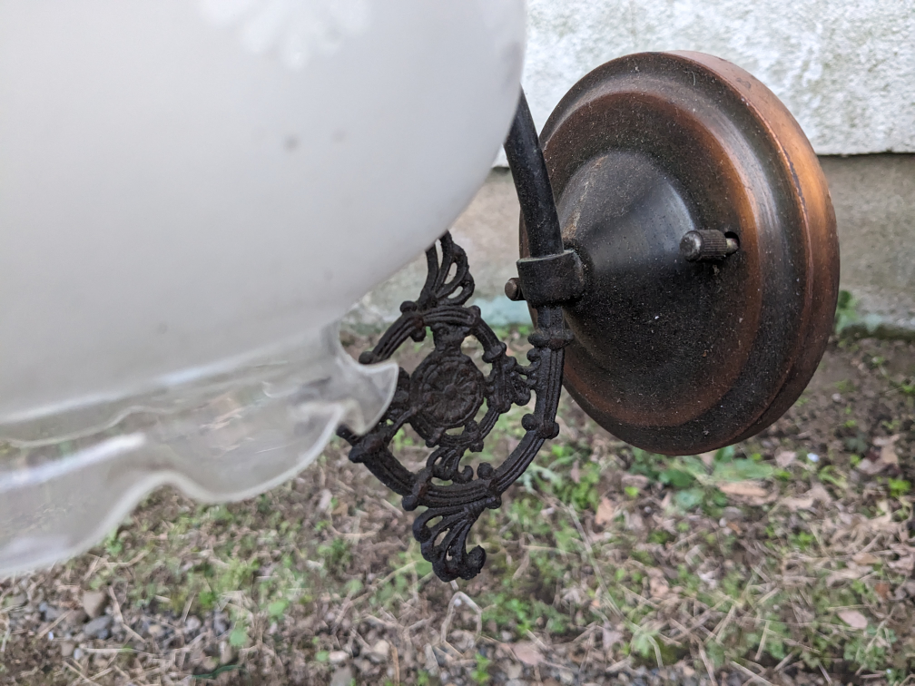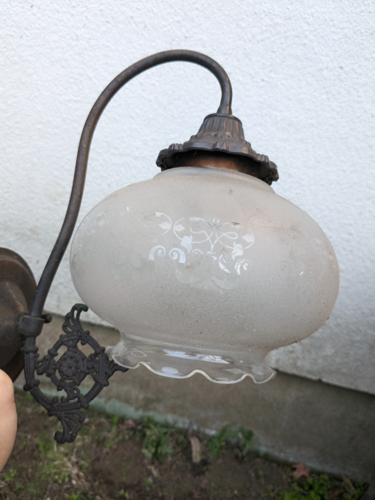 ご覧頂きありがとうございます。 壁取付用のランプシェードになります。 親戚宅のリフォームの不要となり、アンティーク調で綺麗だったため頂いてきましたが、使用しませんでした。 写真の通り、配線を切断してありますので 電気工事が必要になると思います。 ご自身やご家族で使われる方に この品物を引き継いで頂ければ有り難いです。 (転売目的の方はご遠慮ください) お取り引きにつきましては お手数ですがプロフィールをご覧下さい。 お取引場所は 千歳船橋駅、または桜丘区民センター周辺を希望します。 ご検討よろしくお願い致します。