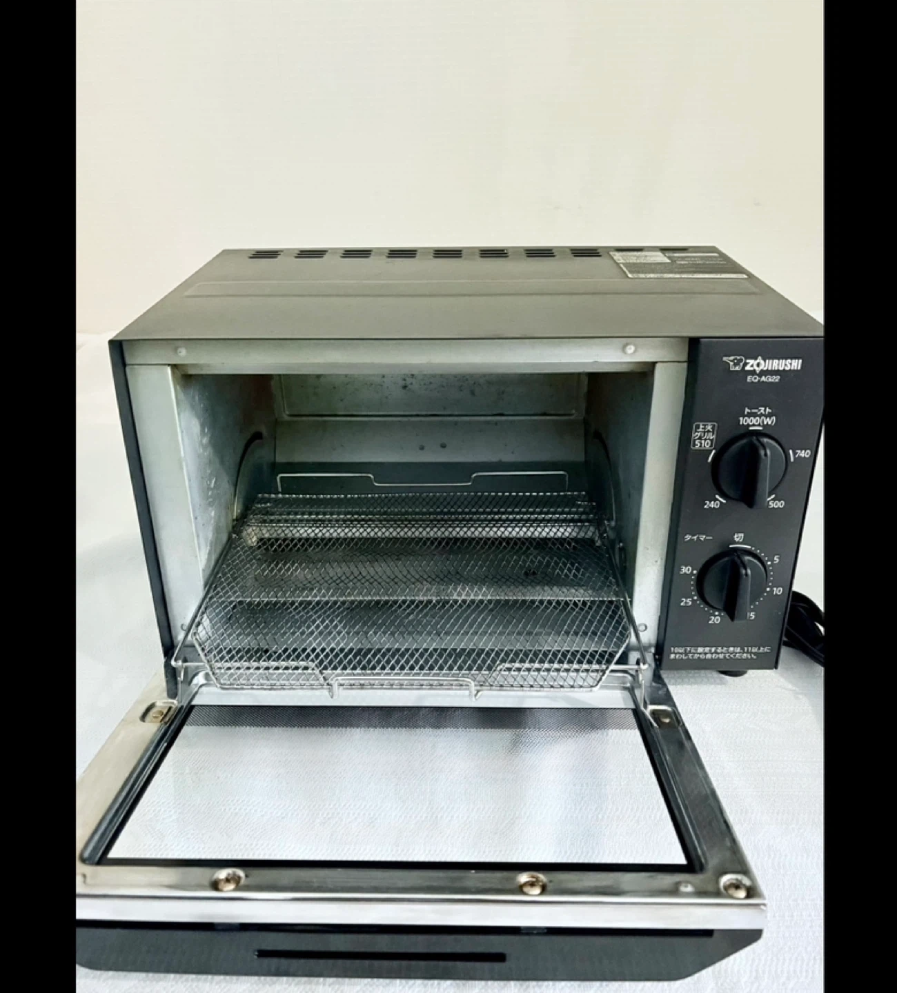象印オーブントースター EQ−AG22 こんがり倶楽部 年式:2019年 質量:4kg 付属品:取説、トレー有り 幅38、5 奥行き27 高さ23 【状態】 使用感有り、焼き付き焦げ跡あります。 中古品であることをご了承ください。 取りに来られる方でお願い致します。 ご不明点があればお気軽にお尋ねください。