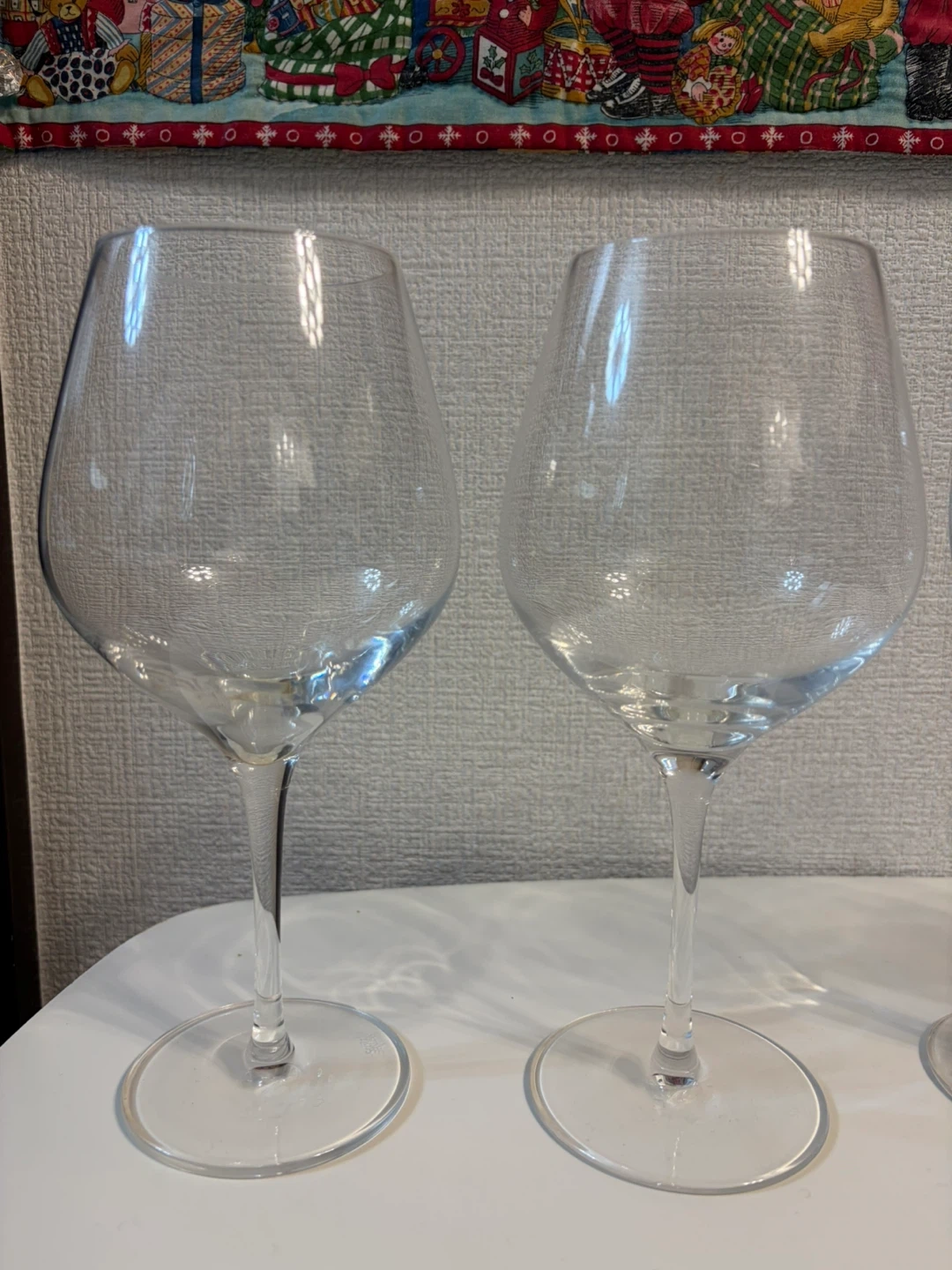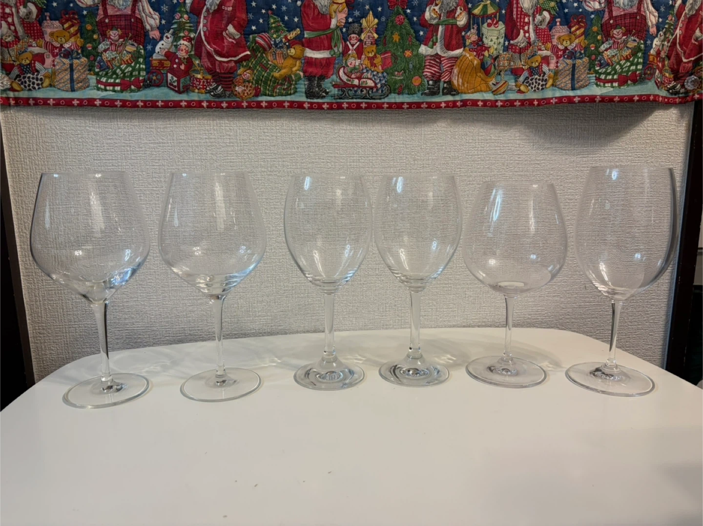 赤ワイングラス6個セットです。 ・個数:6個 ・状態:未使用に近い ・口周り 7cm ・高さ 21cm 22cm 22.5cm 以前、食事会の際に1回使用したと思います。 是非、形が違うグラスに同じワインを注いで飲み比べてみてください。グラスの形によってワインの味は少し変わります。