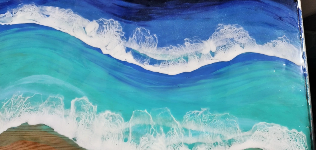 オーシャンレジン折り畳みテーブル ちゃぶ台サイズ アート作品ハンドメイド お洒落インテリア 縦横40×60cm高さ31cm