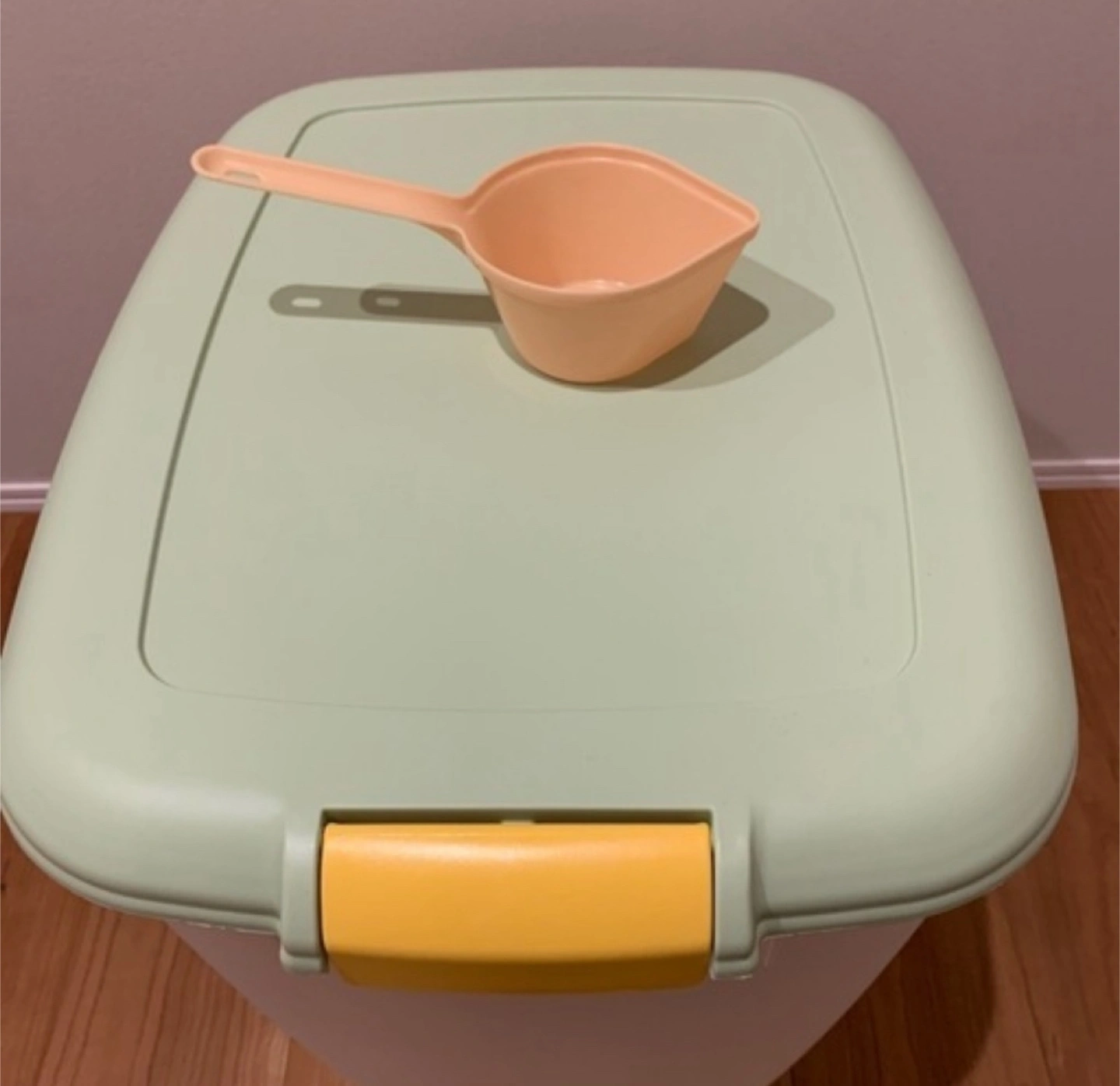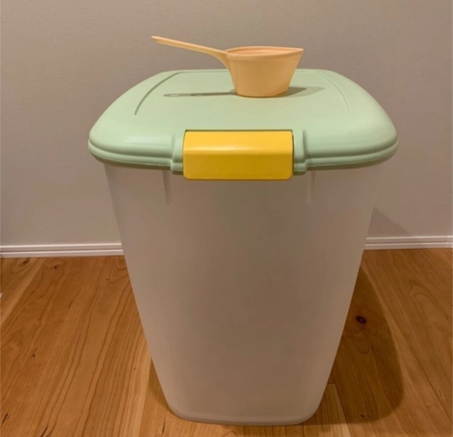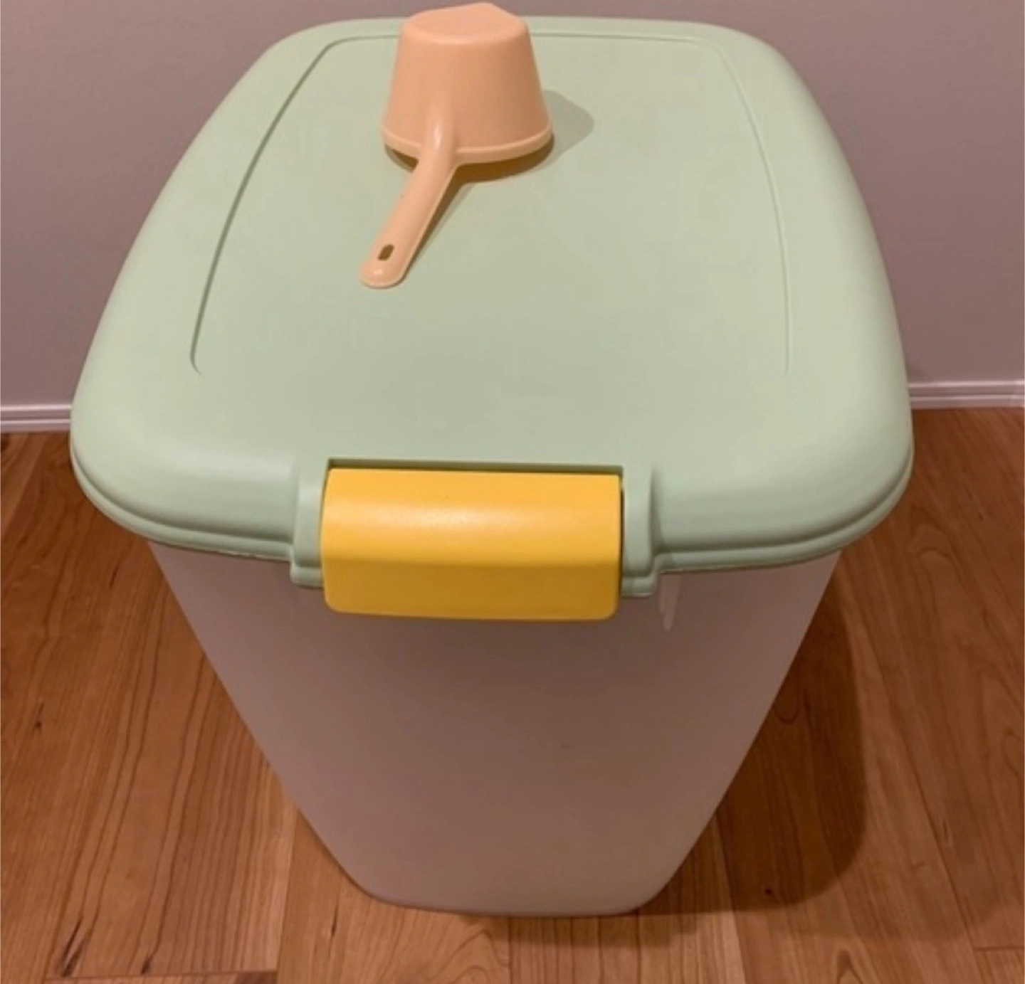 使用頻度が低いのでお譲りします。 殆ど使っていないので、とても綺麗です。 西荻窪周辺で有れば指定場所にお届けします。 ノークレーム、ノーリターンでお願い致します。 オリジナル販売価格: 3,570円 密閉フードストッカー(10kg用) MFS-10 グリーン 専用スコップ付 幅が広く、底が浅めのフードストッカーです。袋のままでもドライフードを入れやすく、取り出しやすいスグレモノ!付属品として、ドライフードをすくうスコップが付いています。底にたまったフードもすくいやすいように、スコップのカップ部分と柄の部分に角度をつけてあります。また、フタの裏に別売の「ペットフードストッカー用除湿剤DR-10」をしまえるカバーがついています。バックル止めで、開閉がしやすい構造。フタの裏のゴムパッキンにより密閉されるので、湿気を遮断し、ドライフードを長持ちさせます。 ●商品サイズ(cm) フードストッカー:幅約36.5×奥行約48.5×高さ約45.5 スコップ:幅約9×奥行約19.5×高さ7.7(柄の長さ9.5cm、スコップ1杯約200cc) ●主要材質:ポリプロピレン、ABS樹脂
