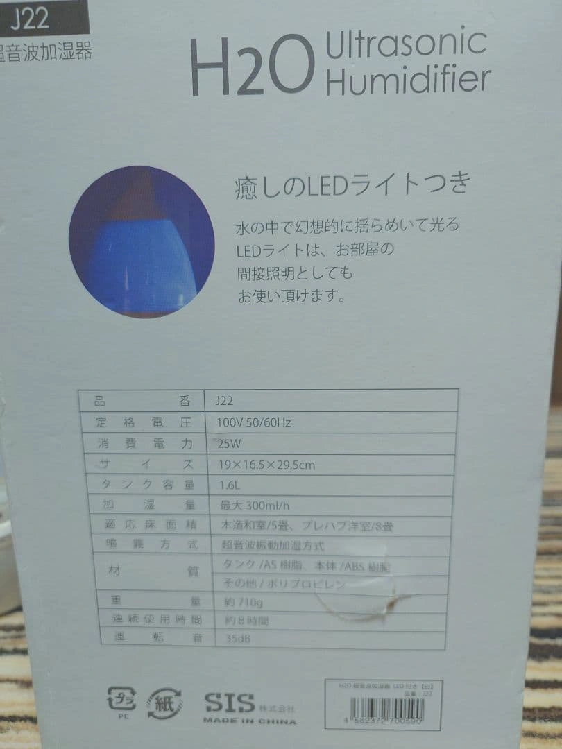 他サイトにも出品中です。 購入前にコメントください。 経年劣化で白が黄色っぽく変色しています。 販売前に動作確認済みで、問題無く加湿できました。 使用回数は5回ほどですが、購入は5年くらい前です。自宅で箱に入れて保管していました。箱に破損があります。 「SIS 加湿器 J22 WHITE」 SIS 型番:J22 WHITE カラー:ホワイト ・小さいのに最大加湿量は300mL/hのハイパワー! ・リビングでもこれ1台で十分な加湿が可能です。 ・超音波式でミストが熱くならず、動作音も静か ・無断階ミスト量調節、アロマ対応、水がなくなったときの自動停止機能付! ・青色インテリアライトも付いてます! ・アロマスポンジ付きでアロマの香りも楽しめます! 代表カラー:ホワイト アロマ:有 加湿タイプ:超音波式 加湿量:300.0 ml/時間 設置タイプ:卓上 マイナスイオン:無 #SIS #スマホ/家電/カメラ #生活家電 #加湿器/除湿機