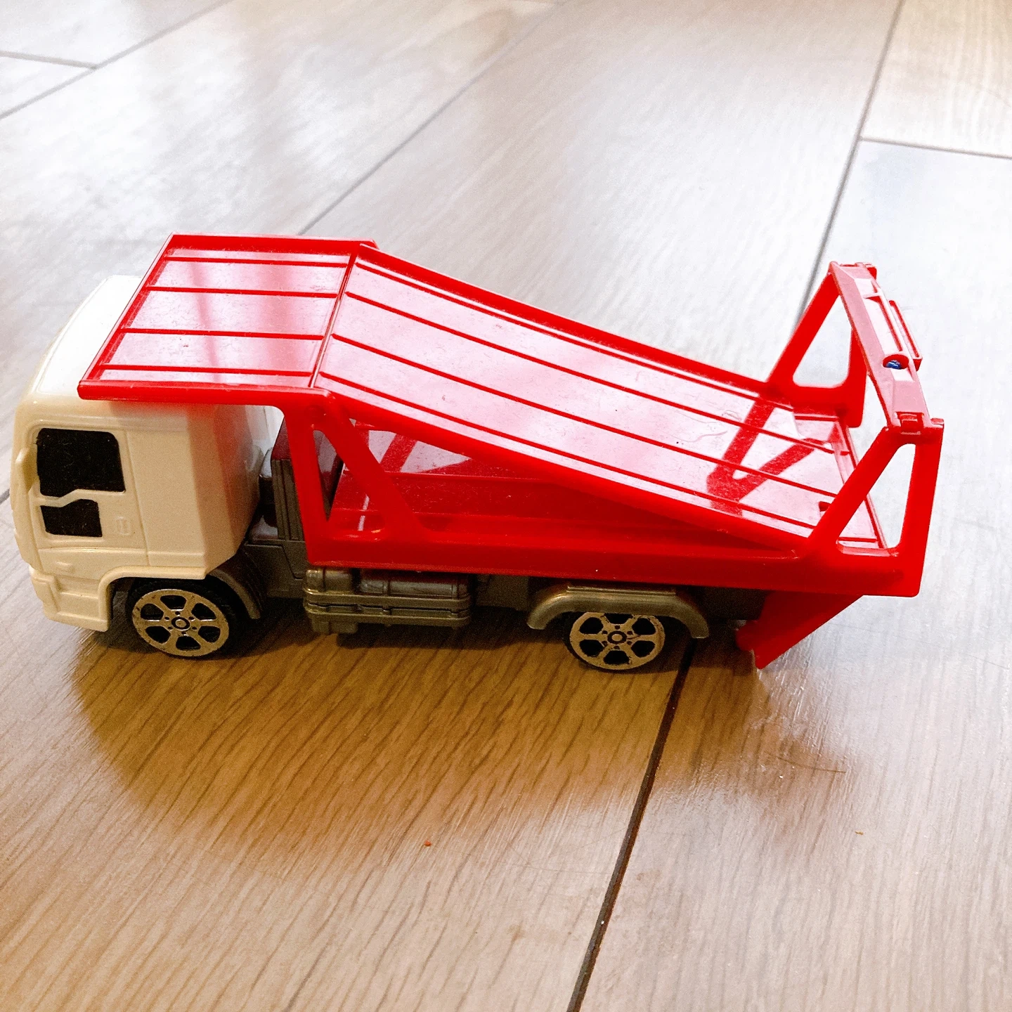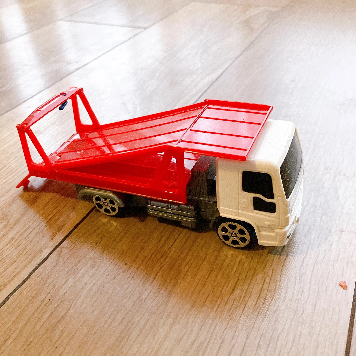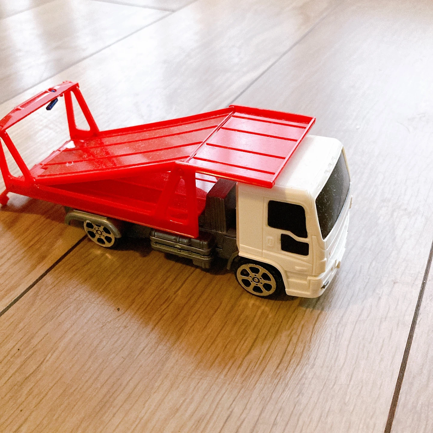 キャリアカーのおもちゃです。 他に出しているダンプカーやショベルカーと比べると小さくて簡易的です。 キャリアカー好きの男の子にオススメです。 他にも車関係のおもちゃアップしておりますのでご覧ください。