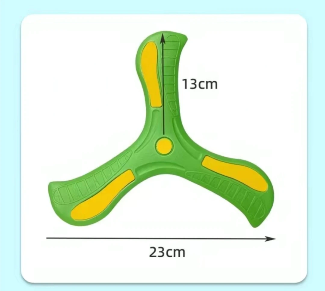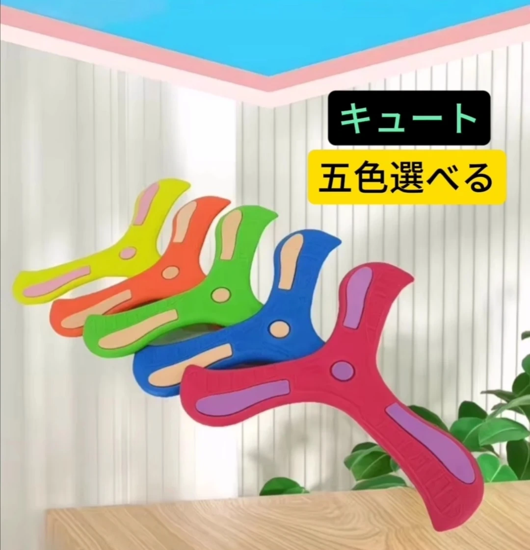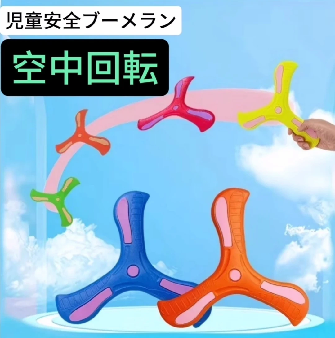 商品特徴: スロー&キャッチに挑戦!子供から大人まで手軽に遊べる、柔らかで安全なEVAフォーム製のソフトブーメランです。 軽くて投げやすい3枚翼型で、上達すれば投げた後に回転しながら直径約20m前後の弧を描いて手元に戻ってきます。 スローイング動作による手首や腕の強化や、ブーメランを目で追う事で動体視力を養う屋外スポーツとしても楽しめます。 ・カラー:5色選べる ①レッド ②ブルー ③グリーン ④オレンジ ⑤イエロー ・材質:EVAフォーム ・サイズ:20×20cm、半径約12cm ・重量:約13g ・対象年齢:6歳以上 ・セット内容:ソフトブーメラン1個 ・上達こつ:両指で下部をつまんで、まっすぐ真上(正面上方)に垂直に投げ出す。