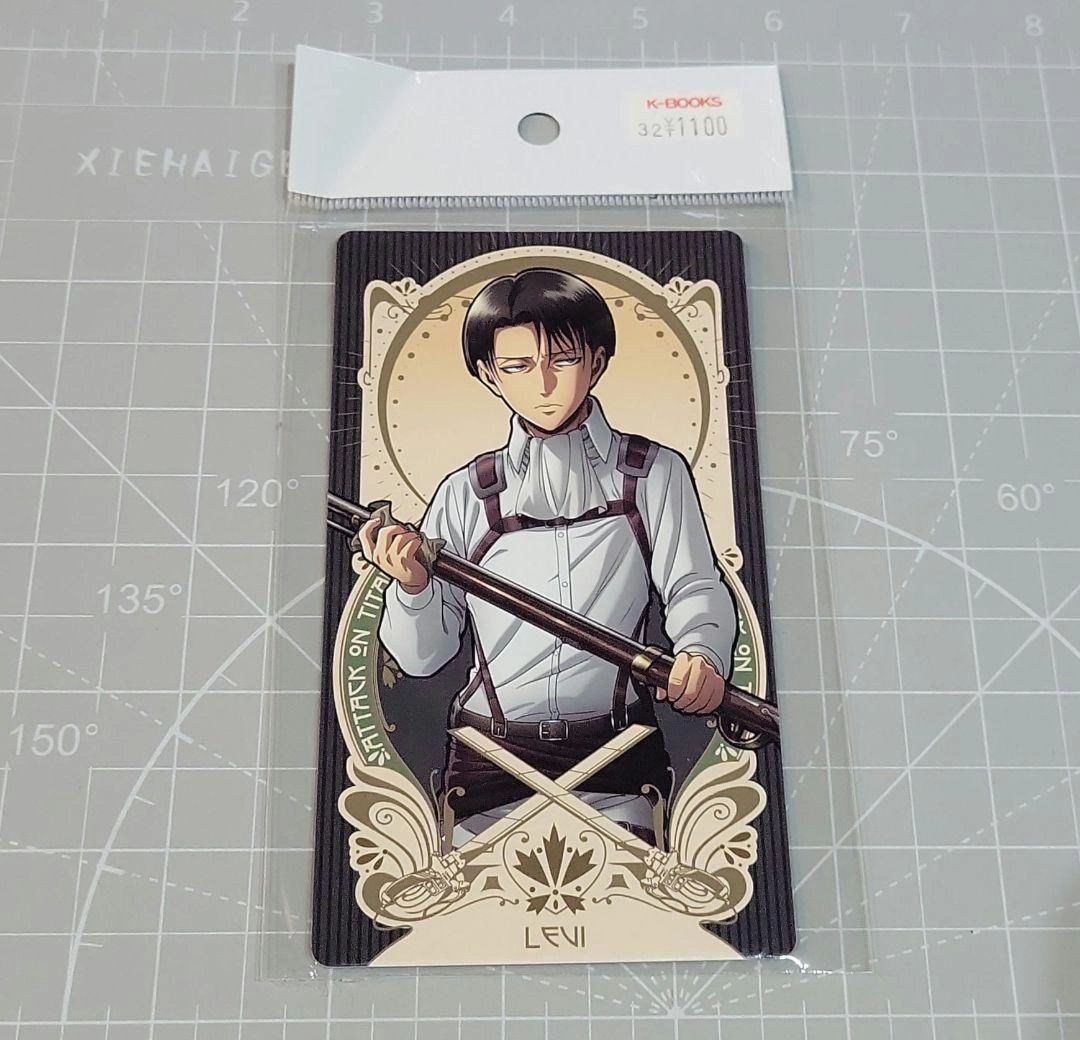 進撃の巨人のリヴァイのイラストが描かれたプラスチック製カードです。 ご覧いただきありがとうございます。 ビニールは綺麗な状態ではありませんが、中身は未開放のままです。 よろしくお願いいたしますm(_ _)m