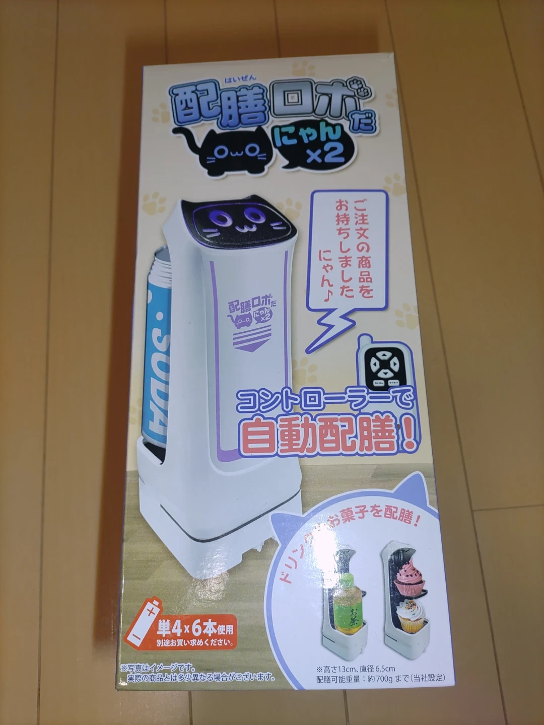 配膳ロボにゃん×2 です。 ・リモコン付き ・箱あり ・単4電池4本、コントローラーに単4電池2本必要です 中古品であることをご了承ください。 お渡し場所は、赤羽駅西口もしくは、北赤羽駅赤羽口などご相談可能です。