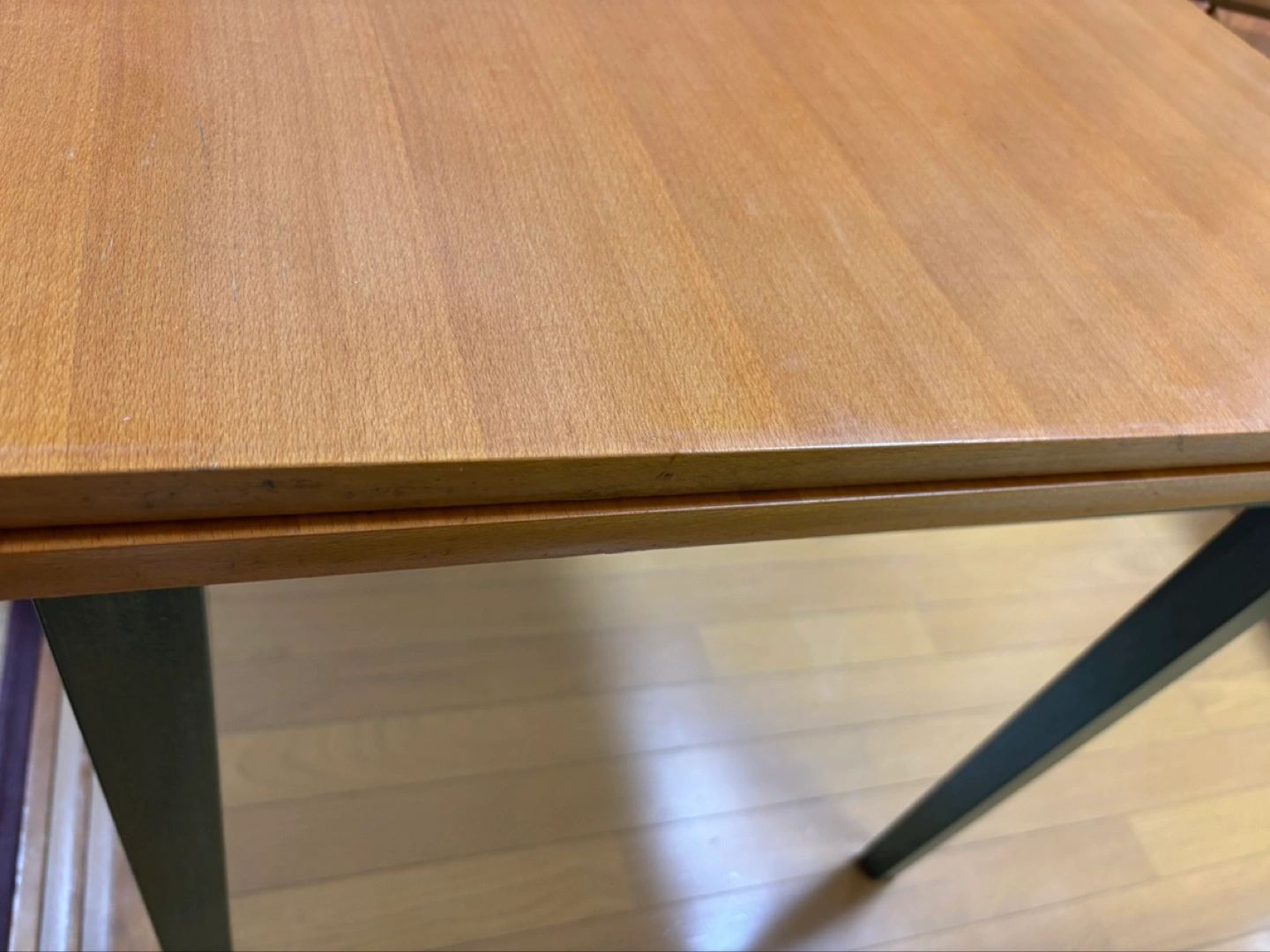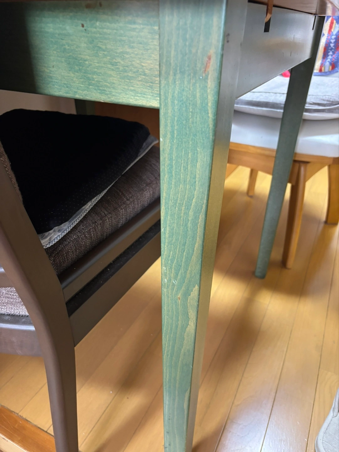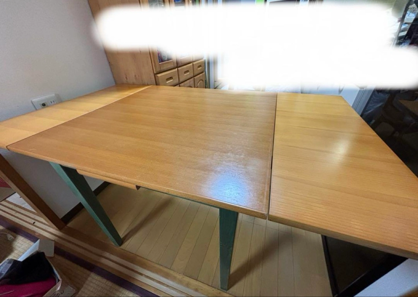 木製の伸縮可能なテーブル、ナチュラルな木目とグリーンの脚。 最大横140cm×縦80cmで、縮めると80cm、100cmに調整が可能です。 - Material: Wood - Color: Natural wood finish with green legs - Table Type: Extendable table - Leg Design: Tapered legs ご覧いただきありがとうございます。 杉並区高井戸まで取りに来れる方限定でお願いします。 配達は相談させてください。