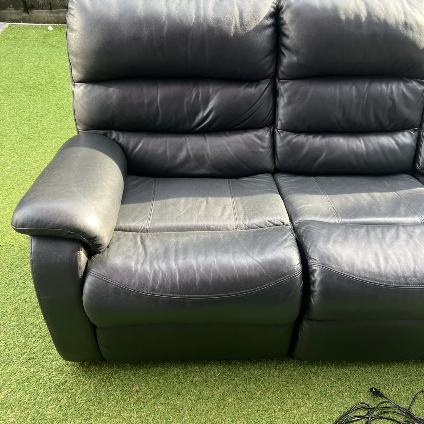 横浜・川崎市内であればプラス1,000円で配達可能です! 予定が合えば多少離れたエリアでも配達可能です。 ※その他地域はコメントにてご相談くださいませ! ニトリ 電動リクライニングソファー ビリーバー3 テーブル付き 3人用 黒 本革 こちらは、ニトリの電動リクライニングソファーで、定価119000円のものです。 部屋の模様替えに伴い、不要になりますので出品致します。 左右は電動でリクライニングしますので、快適にくつろぐことができます。 真ん中の背中を倒すと、テーブルになりますので、コーヒーカップやスマホなどを置くことができます。 - 色: 黒(ブラック) - 素材: 本革レザー - スタイル: 3人掛けソファ - デザイン: リクライニング機能付き サイズ(実測値):幅207×奥行102×高さ95cm 使用に伴う、傷や汚れはあるかと思いますが、まだまだ使用可能です。 写真にてご確認くださいませ。 中古品をご理解の上ご検討下さいませ!