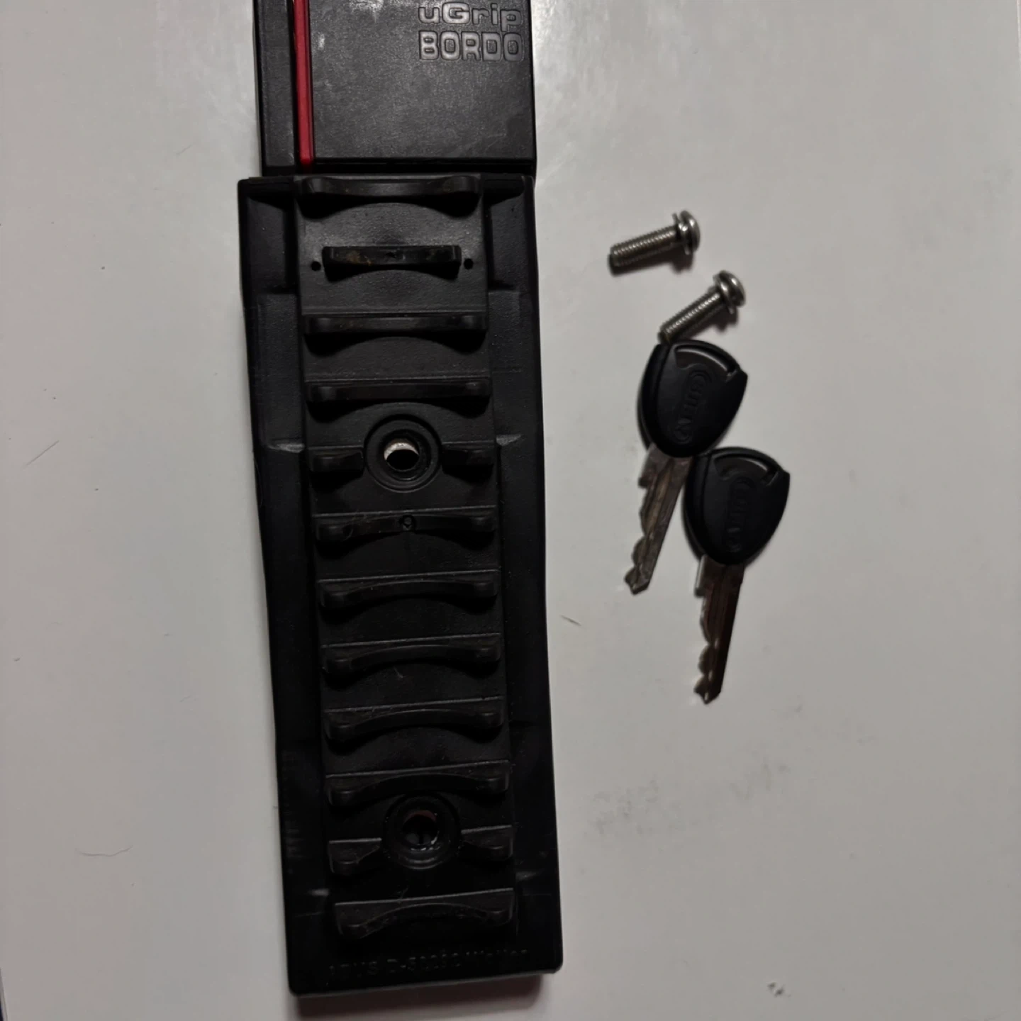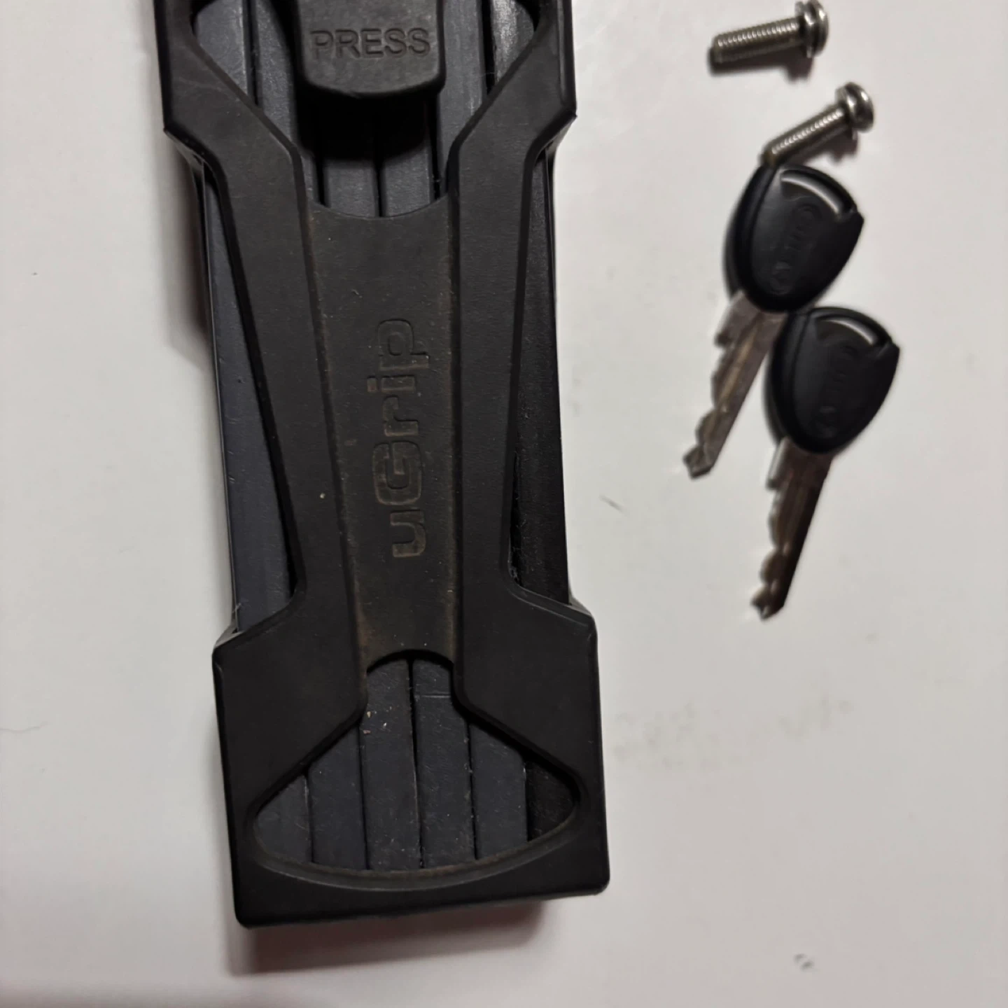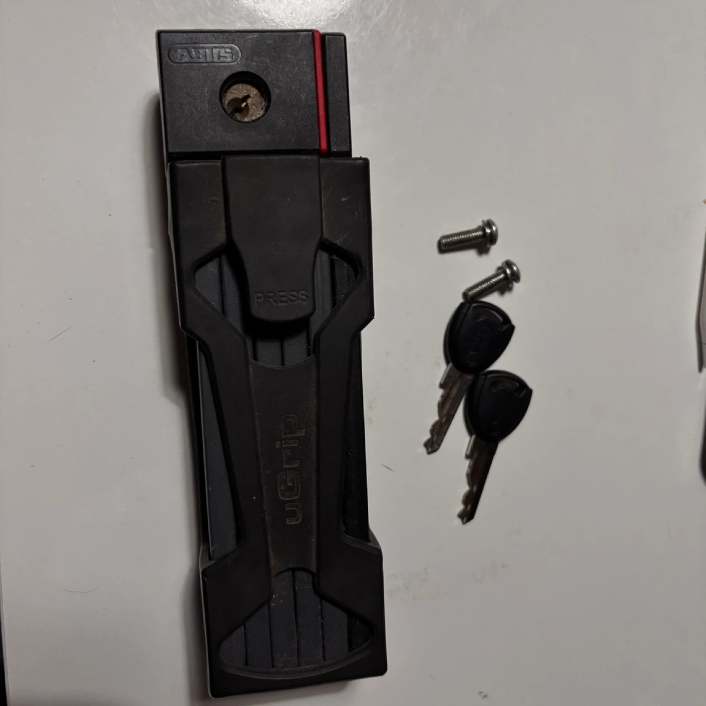 あたたかさ鍵2本ともあり 自転車用ロック ABUS uGrip BORDO 自転車用のロックで有名なABUS uGrip BORDOです 私の自転車に取り付けて使用していたのですが各部位をカスタムする中で重さ的に厳しいと感じて取り替えた為お譲り致します 鍵は2本揃っており車体に取り付けていたボルトもお写真の様に付属します 写真上のものが全てです 都内の自宅近辺指定場所に来ていただける方、個人使用につき傷汚れにご納得頂ける方のみお問い合わせ、ご購入ください