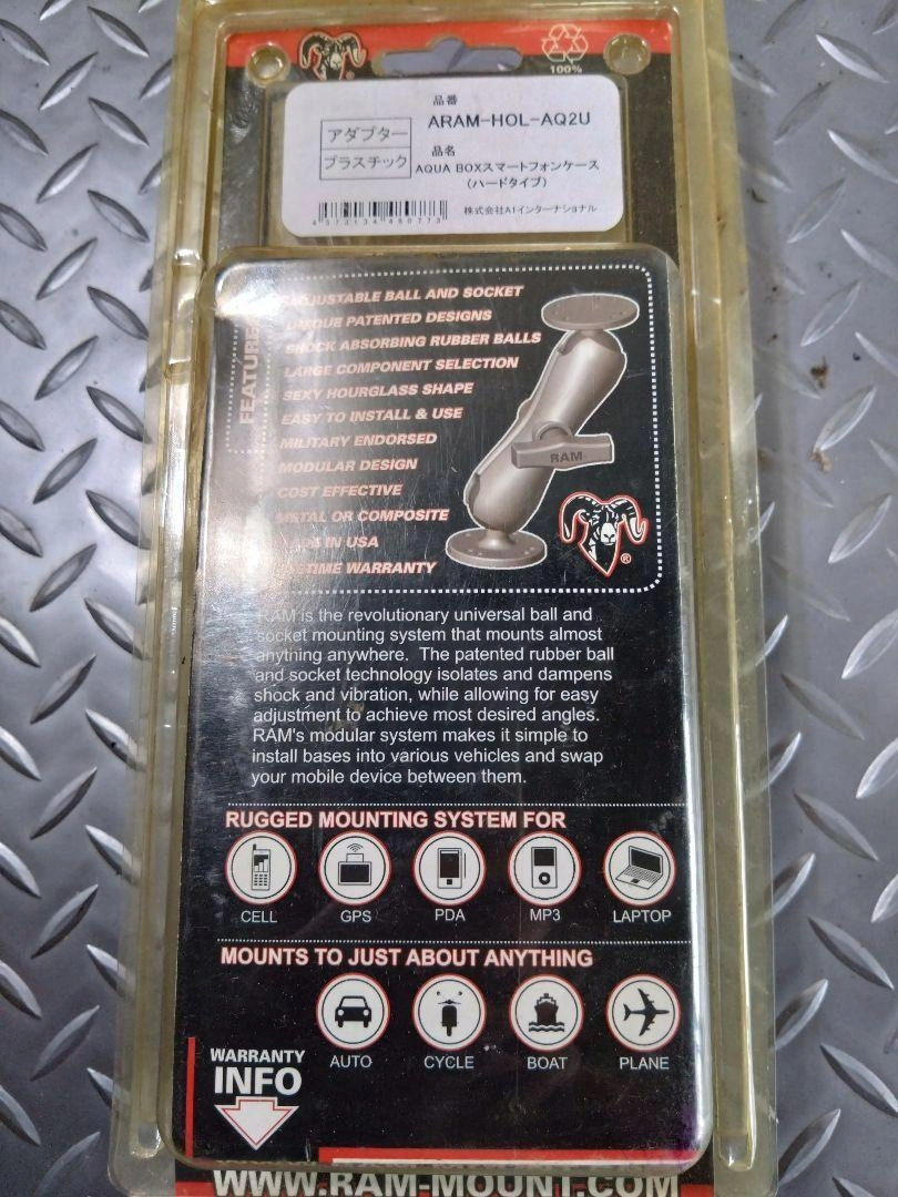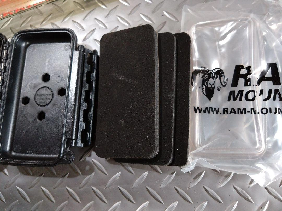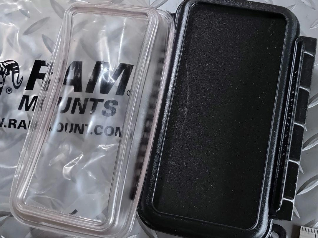 当方のスマホは角張っていて、四角が当たってケースに入りませんでした。 中敷きのスポンジからサイズをご確認下さい。 使える方は大変オトクだと思います。 信頼のラムマウント社製、MADE IN U.S.A.です。 ペリカンケースの様な幅広のヒンジとバックルでバッシャンと閉じるタイプで防水性は高そうです。 ラムマウントシステム愛用者の方に。 長期自宅保管品となりますので画像から状態をご確認ください。分からない部分はご質問ください。