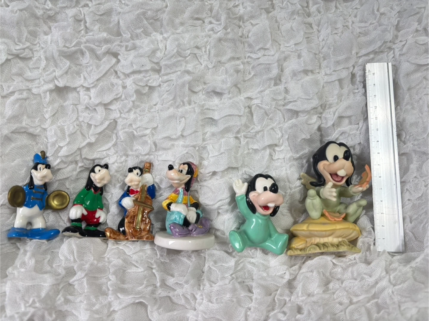 パイレーツグーフィーのみゲーム景品です。 靴裏爪先に1mm程度の欠けがあります(画像あり)。 他5体は購入したものです。 マーチングバンドグーフィーのシンバルの金色釉薬にクスミが出ています(画像あり)。 ベビーグーフィーに所々薄い擦れ汚れのようなものがあります(画像あり)。 全てディスプレイ棚の中に長期保管されていた物で釉薬が付いていない底面に擦れ汚れがあります。 神経質でかたはご遠慮下さい。