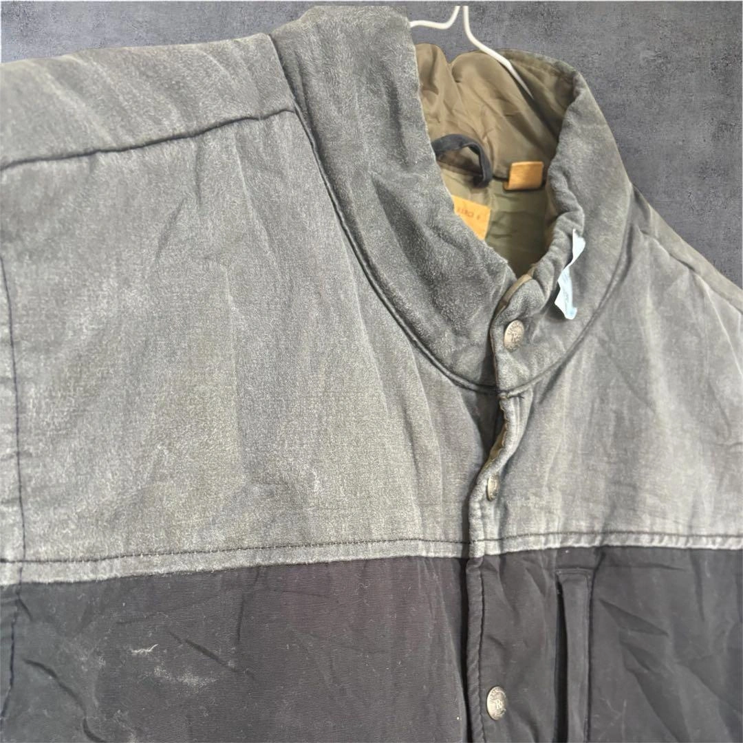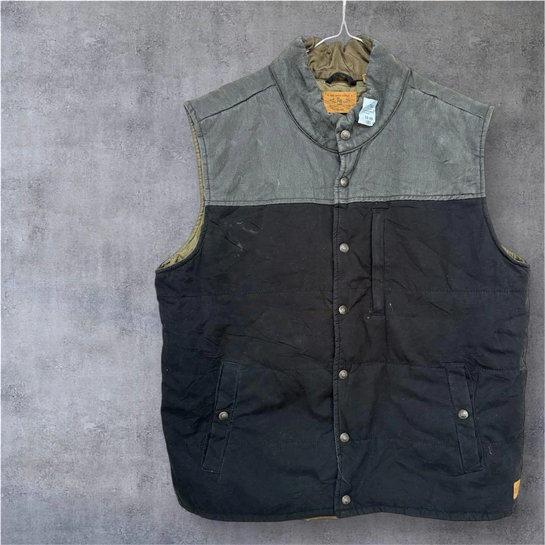 ご覧いただきありがとうございます。 REDHEAD(レッドヘッド)のウエスタン中綿ワークベストです。 全体的に入ったアタリ、色落ち、使い込まれた生地の風合いがあります。 身幅がたっぷりとあるXLサイズです。 ヨーク部分(肩)とボディで切り替えられたウエスタン調のデザインです。 ブラック×グレーの色味です。 中綿入りなので保温性も確保できます。 【商品詳細】 * ブランド: REDHEAD / レッドヘッド * サイズ: メンズ XL * カラー: ブラック × グレー系(2トーン) こちらはユーズドのワークウェアです。全体的に色あせ、スレ、汚れ、使用感がございます(画像参照)。それらを「古着の味・雰囲気」として楽しめる方のみ、お願いいたします。