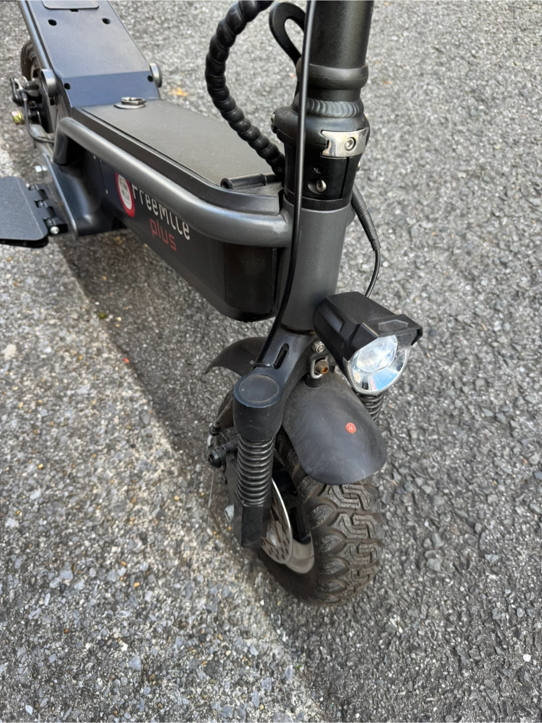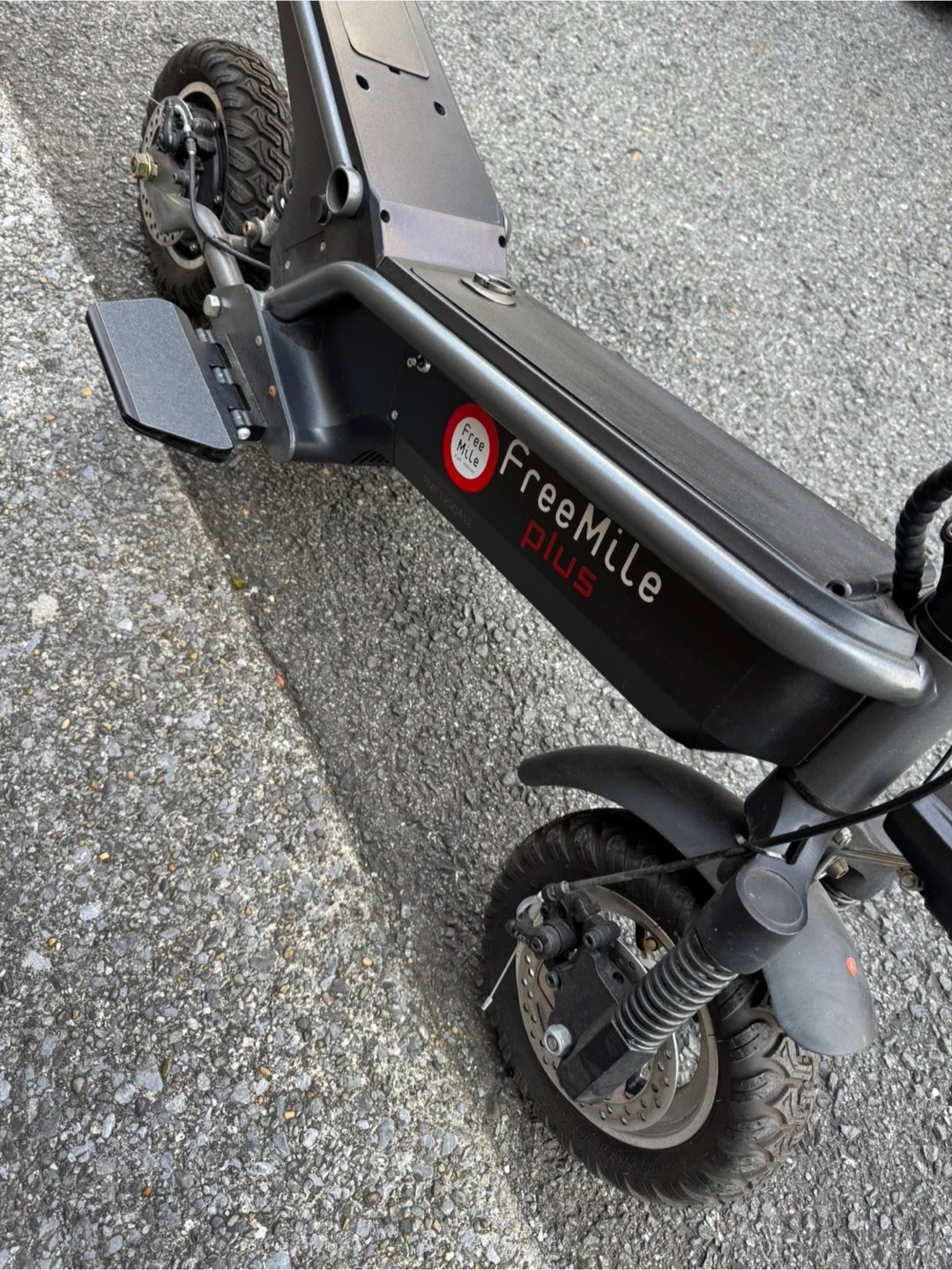 Free Mile plus 一般小型原付 色:グレー 横浜市鶴見区で試乗してからのご購入可能です PRODUCT INFORMATION モデル型式FM-F1 サイズ L×W×H (折畳 H)cm120×60×120(58) 耐荷重120kg パワー500W 最高時速45km/h スピード切替3段階/15−30−45 アクセルグリップスロットルアクセル ブレーキ 前輪:ディスクブレーキ 後輪:ディスクブレーキ タイヤサイズ10インチ(25.4cm) リチウムイオンバッテリー48V 10Ah バッテリー着脱可 最大航続距離10Ah:30km 最大上昇角度20% 充電時間最大5-6時間(空の状態からフル充電) 重さ約30kg IP規格(防水レベル)IP54 その他イグニッションキー バッテリーキー 充電器 電気代/1回フル充電11円 デジタル表示の速度計とバッテリー残量表示を備えた、調整可能なハンドルのブラックのfreemile電動スクーターです。 - モデル名: freemile - カラー: ブラック - ディスプレイ機能: デジタル表示、速度計、バッテリー残量表示 - 車輪サイズ: 小型タイヤ - ハンドル: 調整可能 - ブレーキタイプ: ディスクブレーキ ご覧いただきありがとうございます。