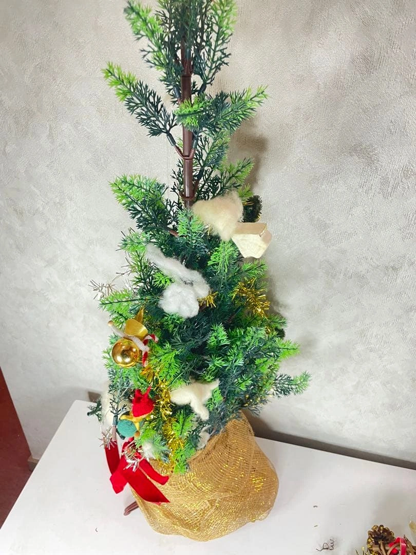 装飾が施されたクリスマスツリー、 家庭やオフィスに最適。 木はプラ素材でできていますので、枯れたり掃除したりしなくて済みます。 - 装飾: クリスマスツリー、装飾セット付き - 色: 緑、金、赤 - サイズ: 約70cmの高さ、幅20cm 装飾がまばらについておりおしゃれです。 自分で装飾つけても良いと思います。 装飾は袋等に入れて一緒におつけします。 【お渡し場所】ファミリーマート大田千鳥3丁目店前 【取引日時】金曜、日曜を除いた平日昼間〜夕方まで 監視カメラがある場所なので夜でもかまいません。 上記の条件に合わせてくださる方を優先させていただきます。(早いもの勝ちではありませんのでご了承ください)