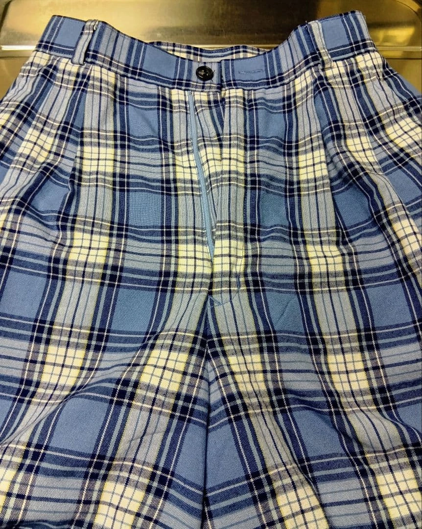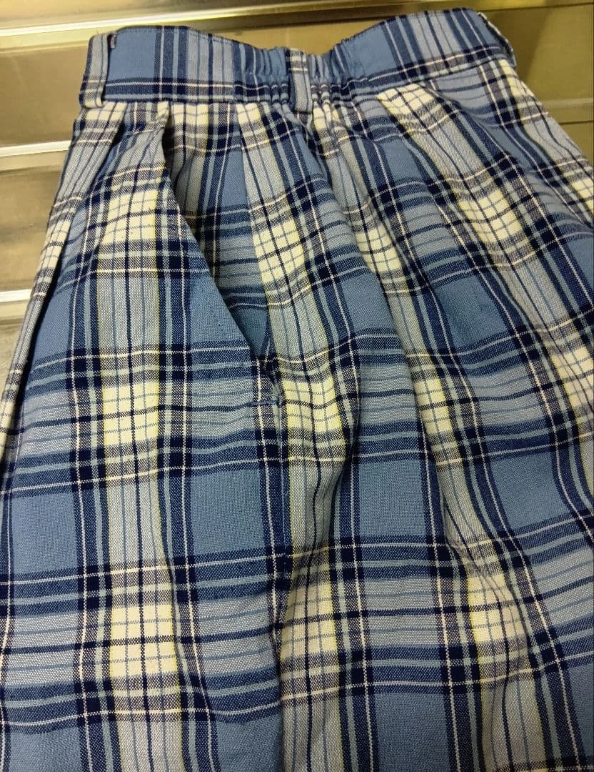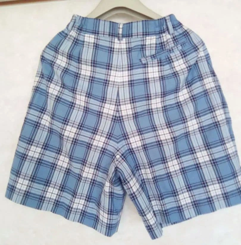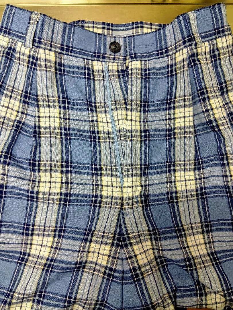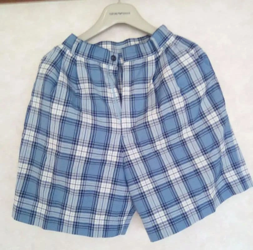 ひざ上パンツ 青チェック ウエスト63cm 両脇ゴム ベルト通しあり 丈 約46cm 数回 使用 洗濯済み #ショートパンツ #青チェック ご希望の方はお気軽にご連絡ください。