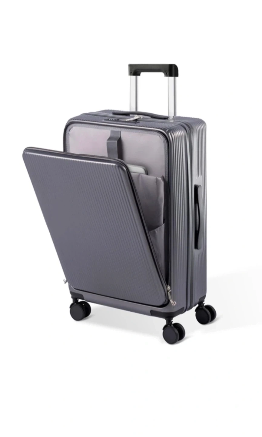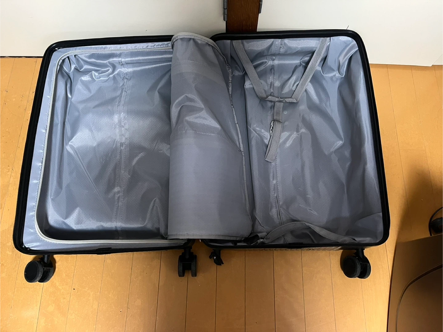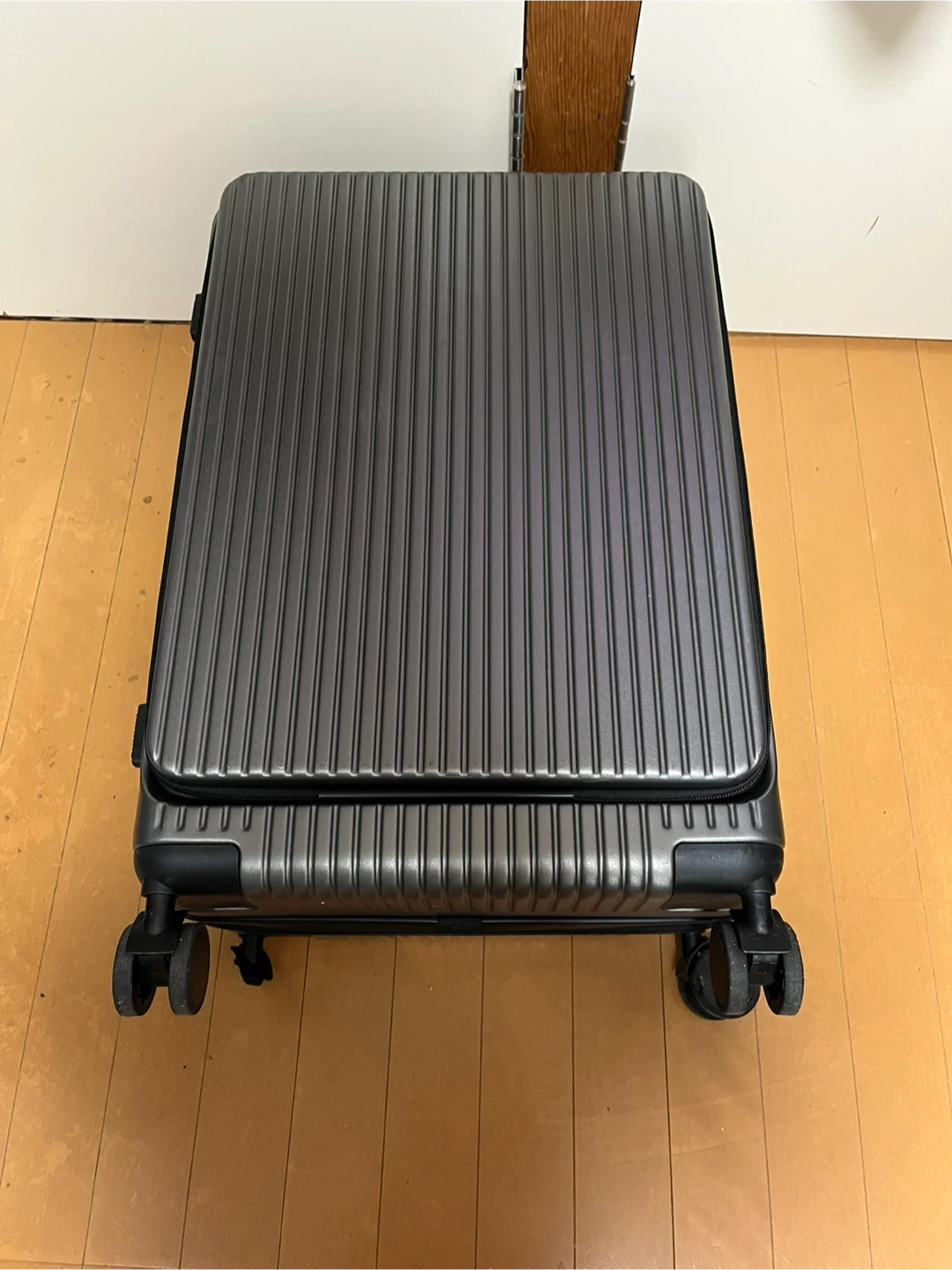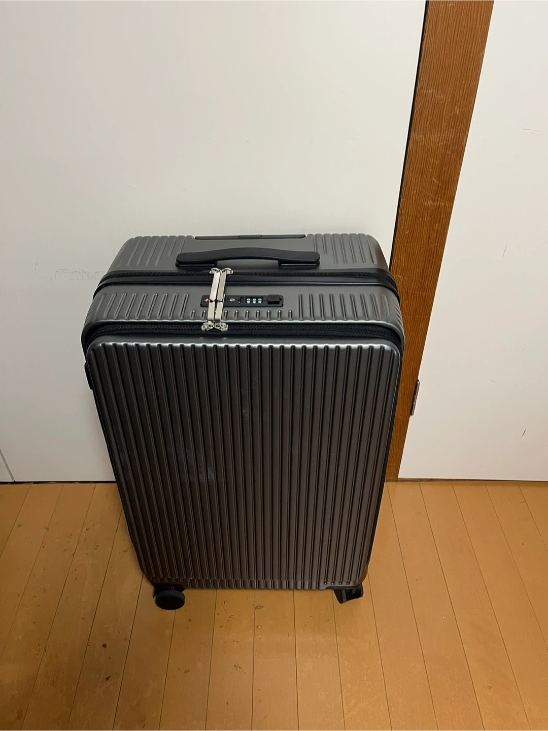 多機能スーツケース M グレー ・サイズ:M(W44×D29×H65cm) ・容量:67L ・重量:約4.5kg ・4〜7泊 【情報】 種類:スーツケース 特徴:USB充電ポート付き、カップホルダー、スマホ置き、TSAロック、360度キャスター 使用回数:1回のみ 一つのキャスターは壊れてしまい、ミスターミニットで修理不可になりまして、ご了承下さい。