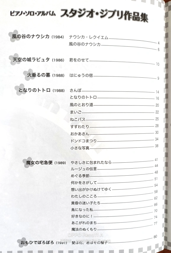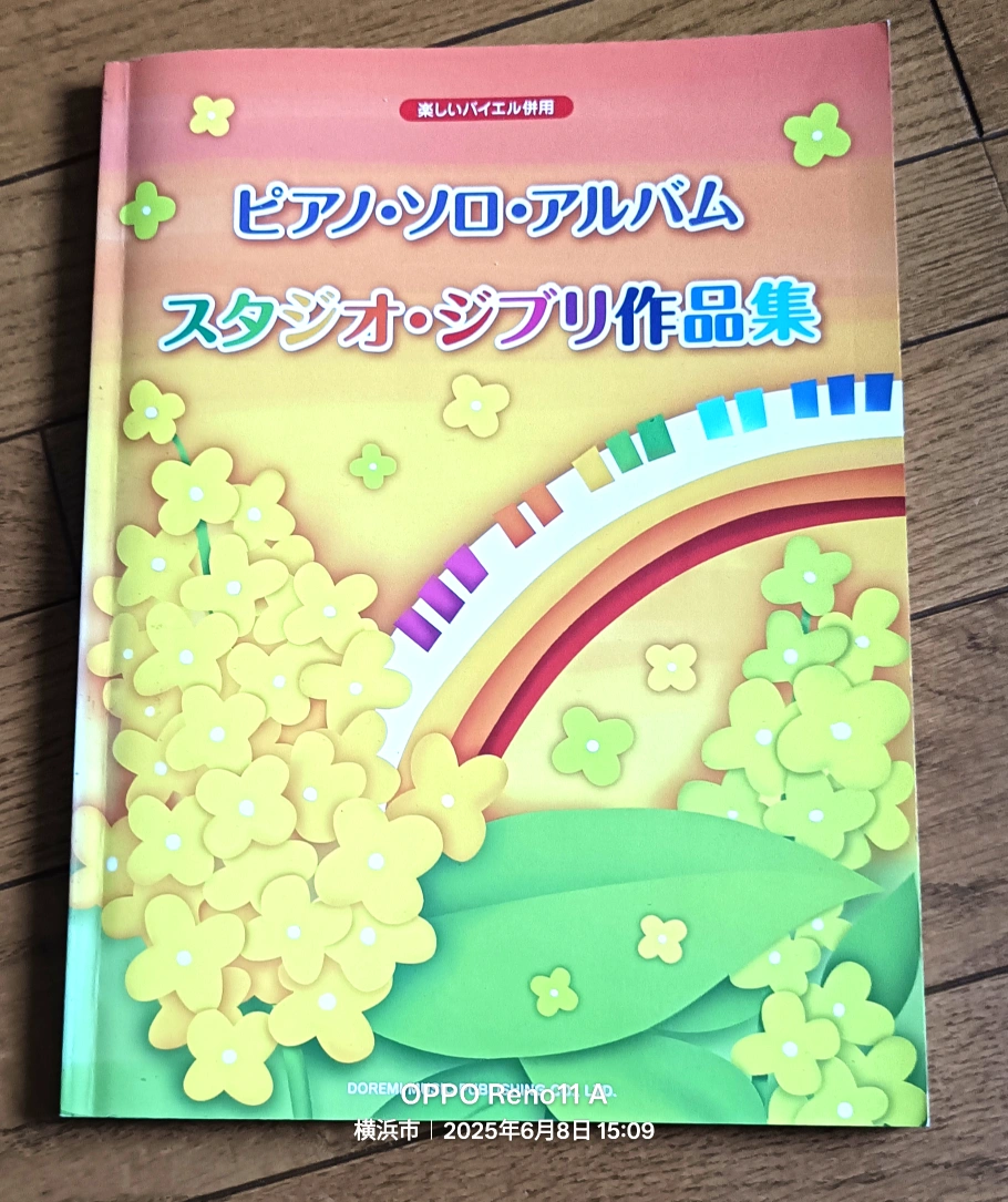 初心者もOK。 ピアノソロアルバム「ナウシカ」、「ラピュタ」、「トトロ」、「魔女宅」、「千と千尋」などなど収録曲多数。 折り跡がありますが、目立った傷や傷みはなく、中身は書き込み等はなく、比較的キレイな状態だと思います。 バイエル併用で60番、70番程度です。 楽しんで頂けると思います。