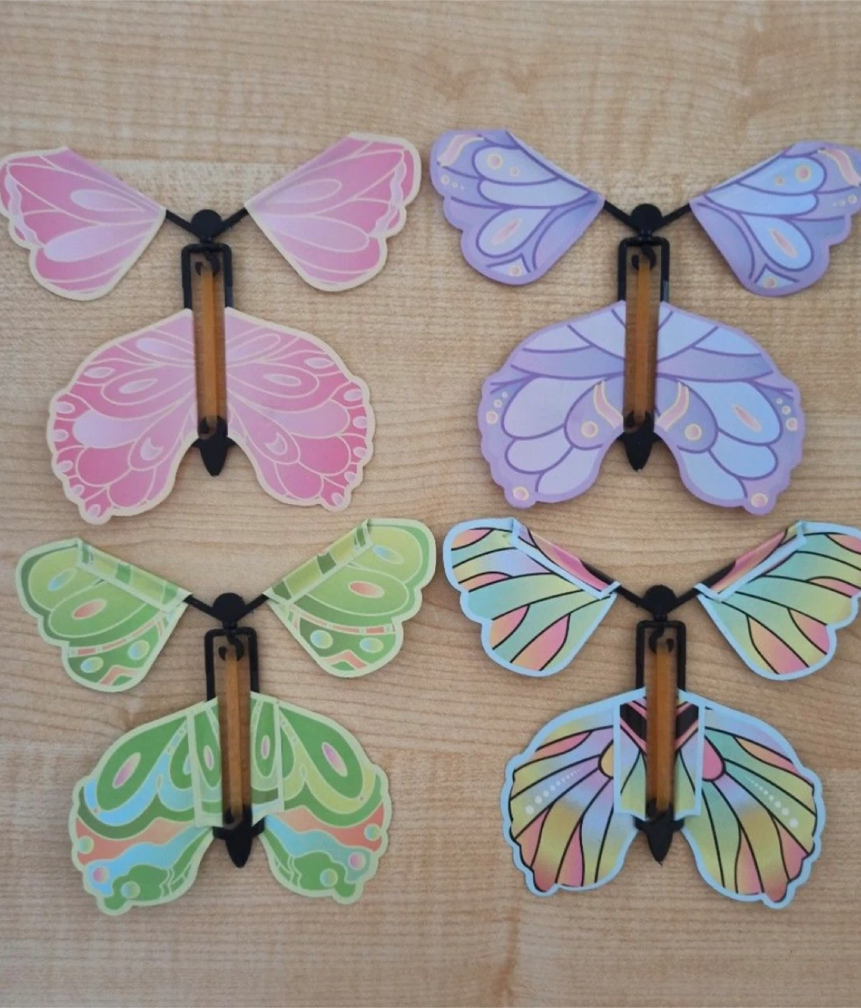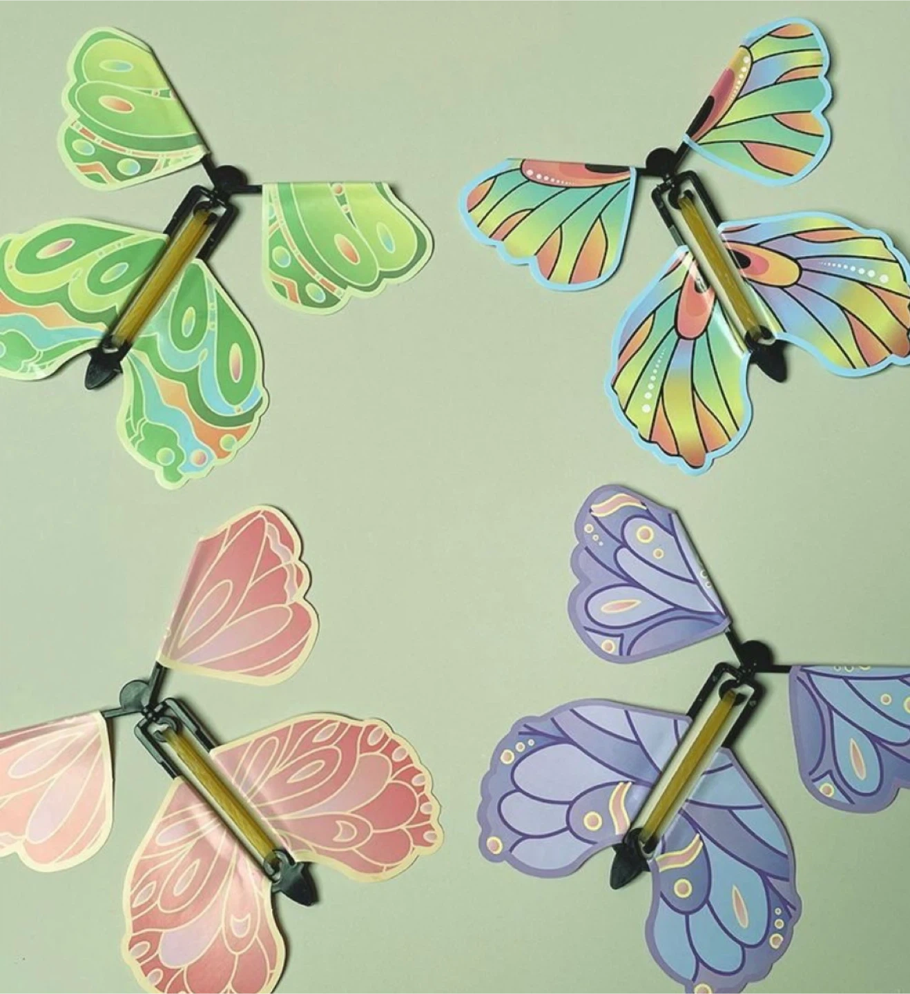 こちらは人気の「飛ぶ蝶々」トイです。 真ん中のゴムを巻いて羽を回転させると、手を離した瞬間にまるで本物の蝶々のようにパタパタと飛び出します。 軽量でシンプルな仕組みながら、サプライズやドッキリ、手品(マジック)、いたずらグッズとして大活躍! サイズ:約12.5×11cm セット内容:蝶々4枚 カラー:ピンク・グリーン・パープル・カラフル お子さまのおもちゃとしてはもちろん、パーティーグッズ、誕生日プレゼント、ギフト、景品、余興アイテムにもおすすめです。 キーワード 飛ぶ蝶々 / 蝶々おもちゃ / サプライズ / びっくり / ドッキリ / 手品 / マジック / トリック / いたずらグッズ / 驚き / パーティーグッズ / プレゼント / ギフト / 不思議 / 面白グッズ / ストレス解消 #飛ぶ蝶々 #サプライズ #ドッキリ #手品 #パーティーグッズ #プレゼント #ギフト #おもちゃ