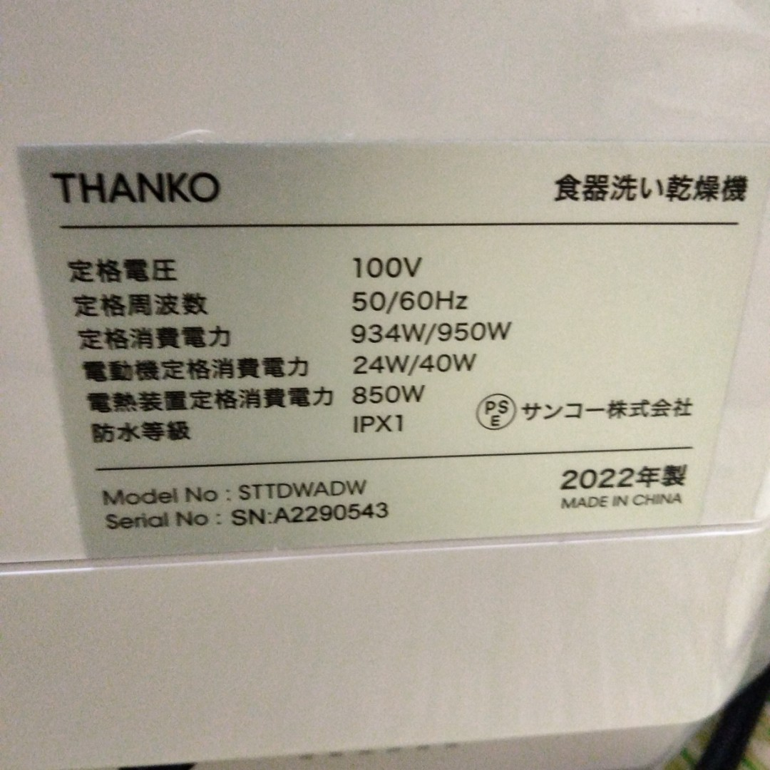 ご覧頂きありがとうございます THANKO 食器洗い乾燥機 幅410×高さ440×奥行410(mm) 重量13kg 洗浄、除菌済み 動作確認済み 工事不要 直ぐに使えます 目立つ傷や汚れはありません 殆ど使わずにいましたので出品致しました 中古品が気になる方はご遠慮ください。 付属品は画像参照のものになります(写真をご確認ください) ダンボールや梱包類はございませんので御了承ください 東京都 世田谷区池尻 ヤマト運輸三宿営業所 前
