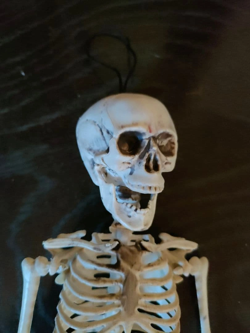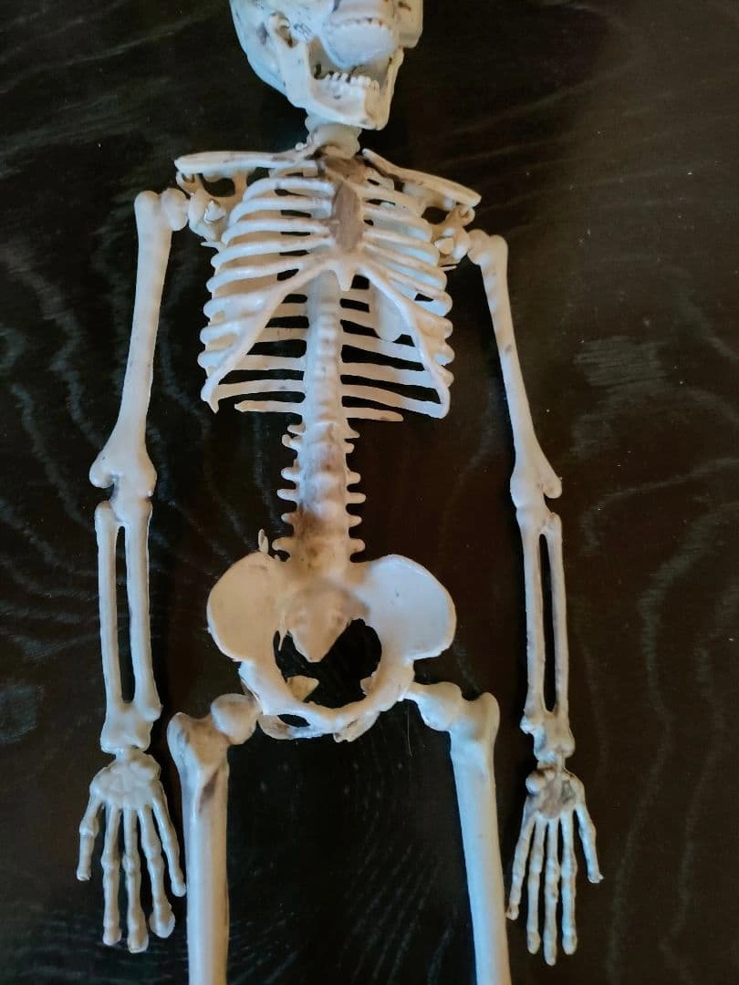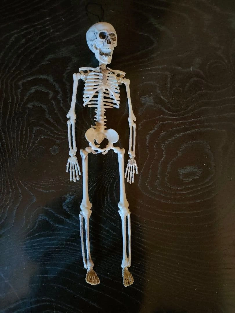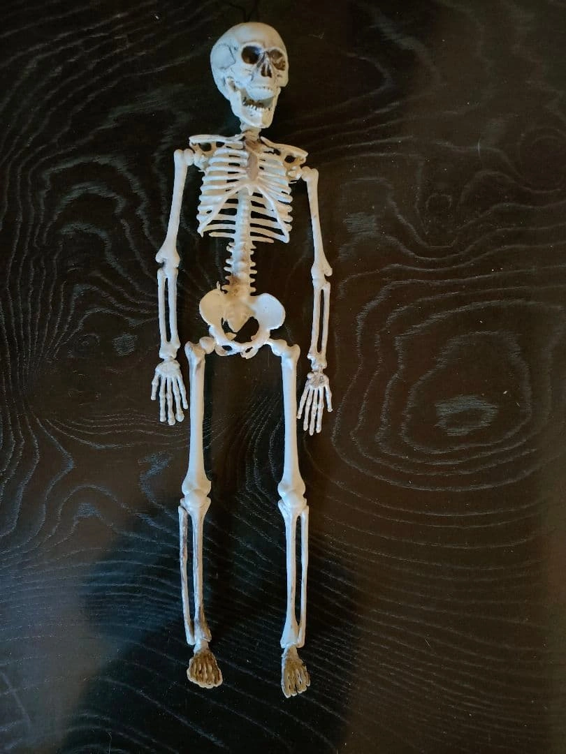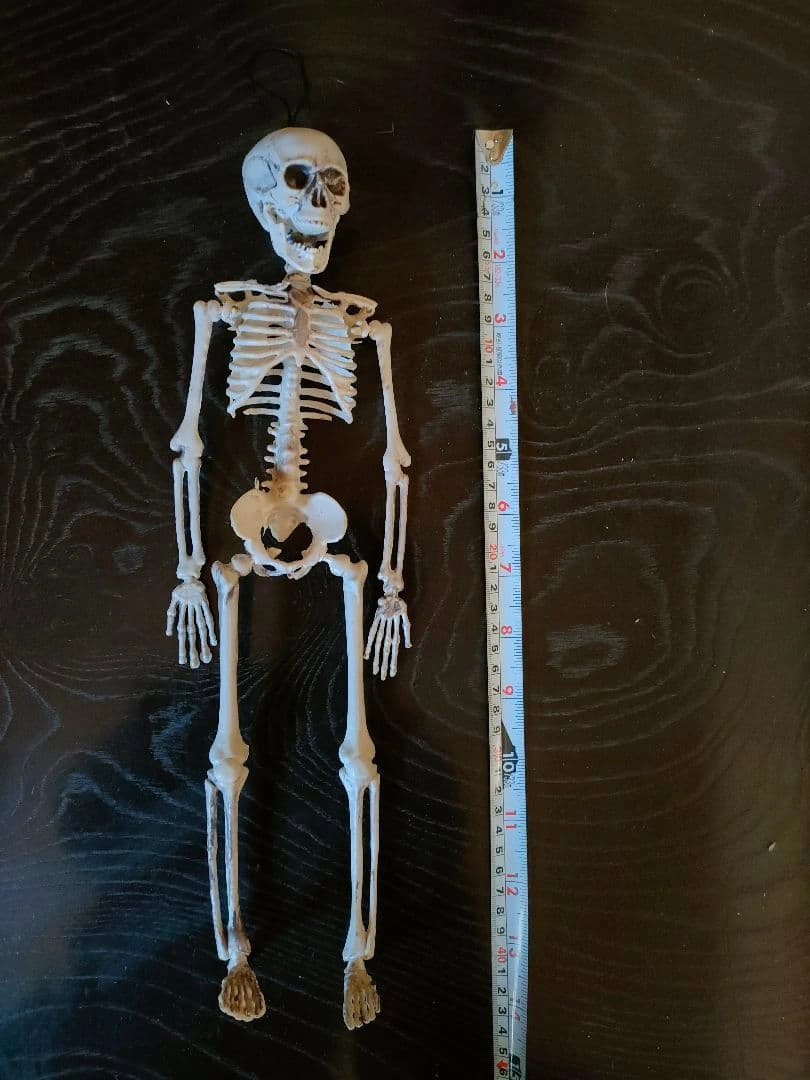 ご覧いただきありがとうございます。 骨格標本 骸骨 ストラップ付き 白  5箇所可動 (首、両足付け根) 色々な格好にできます。 足を伸ばせば40センチ近くになるかと思います。 ハロウィンの飾りにも♪ アミューズメント品・自宅保管とご理解の上よろしくお願いいたします。