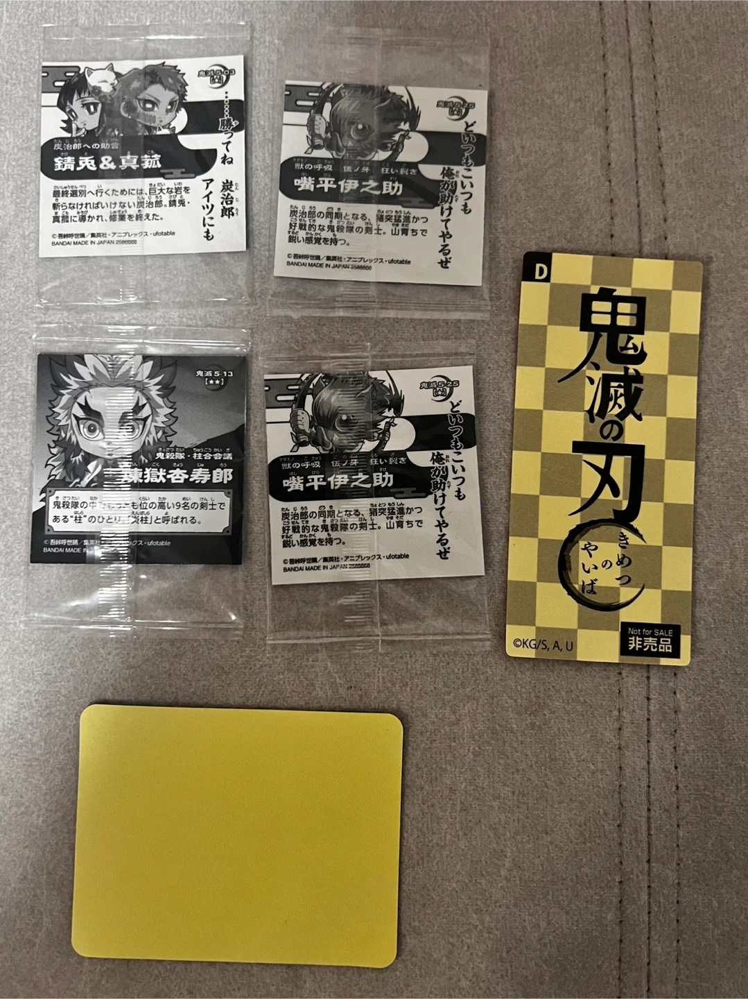 鬼滅の刃 ファイル、シールなどのセットです。 バラ売りは考えていません。 ・映画 劇場版 鬼滅の刃 無限城編 第一章 猗窩座再来 入場者特典 第4弾キービジュアル イラストボード ・ファミリーマートコラボ クリアファイル 竈門炭治郎 1つ ・早稲田アカデミー 鬼滅の刃クリアファイル 非売品 2つ ・すき家×鬼滅の刃 竈門炭治郎日記帳A5ノート 非売品 ・鬼滅の刃 MARUMIYA 丸美屋  ホログラムシール15 9人の柱 ・鬼滅の刃ディフォルメシールウエハース 5-25嘴平伊之助 2つ 5-13煉獄千寿郎 5-03 錆兎と真菰 ・不死川実弥 シール 非売品 ファイルは未使用ですが、店舗でもらった時から袋に入っていなかったため、細かな傷などがあるので目立った傷や汚れなしとしています。他のお品は未使用です