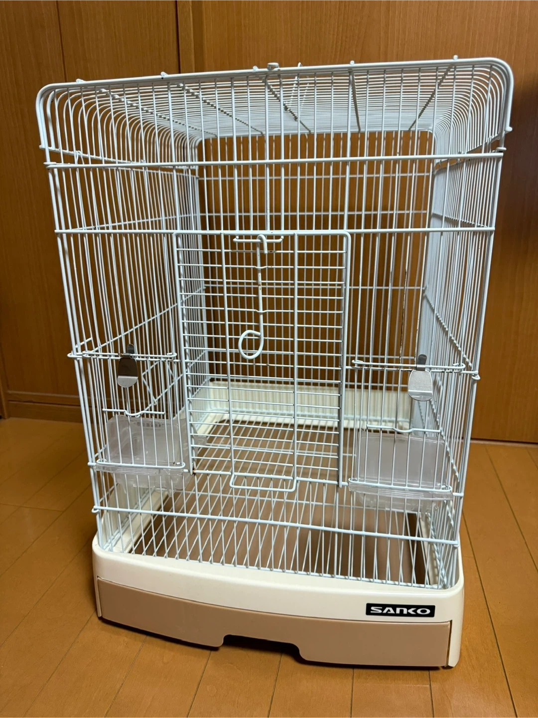 諸事情により再投稿です。 飼っているオカメインコのケージを買い替えたため、以前のものが不要になりました。どなたかにお譲りします。 正面から見て右側のエサ入れの金具がゆるくなっていて取れやすいですが 鳥かごとしてはまだ使えます。 パーチ(止まり木)は汚れが落ちにくかったため、付けていません。 鳥さんのためにも新しいものを使われる事を推奨します。 写真に写っている蓋付きのエサ入れはお付けします。 念入りに掃除済みです。 受け渡し場所はご相談させて下さい。