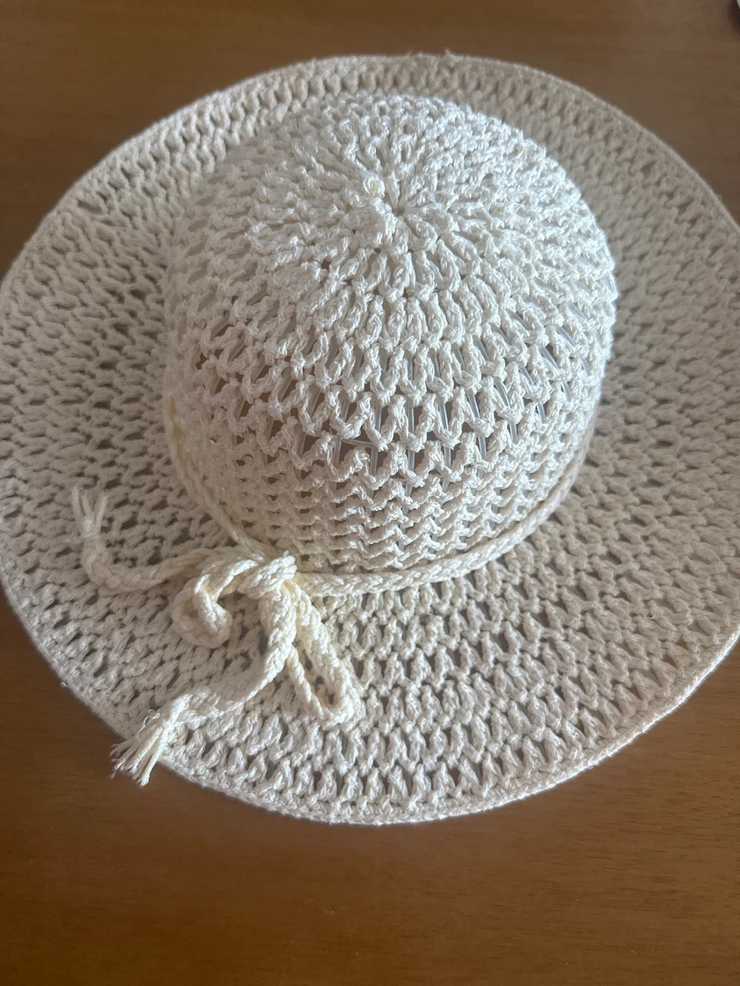 手作りの麦わら帽子です。 手作りのためプラスチックの繋ぎ目が割れてる部分がありますが使用上は目立たないかと思います。 ・色:オフホワイト ・状態:使用感少なめ、目立つキズや汚れなし 中古品であることご了承ください。