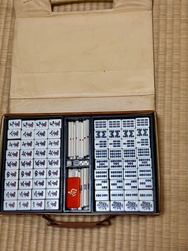 長期自宅保管品の中古の麻雀牌になります。 牌は比較的きれいです。 点棒は少し足りない棒があるかもしれません。写真をご確認願います。 ケースは汚れ、傷みがあり、留め具が片方ないです。 縦約26mm×横約18mm×厚み約15mm ご希望の方はお気軽にご連絡ください。
