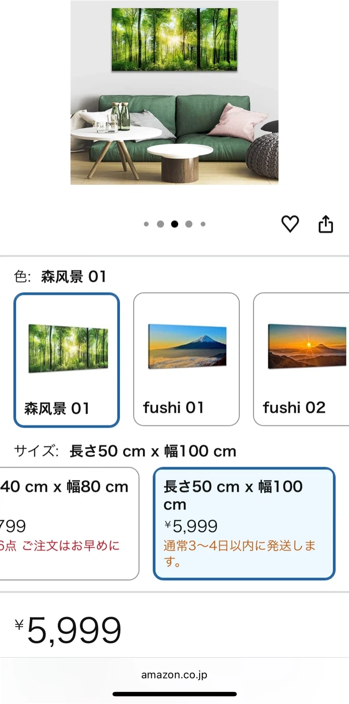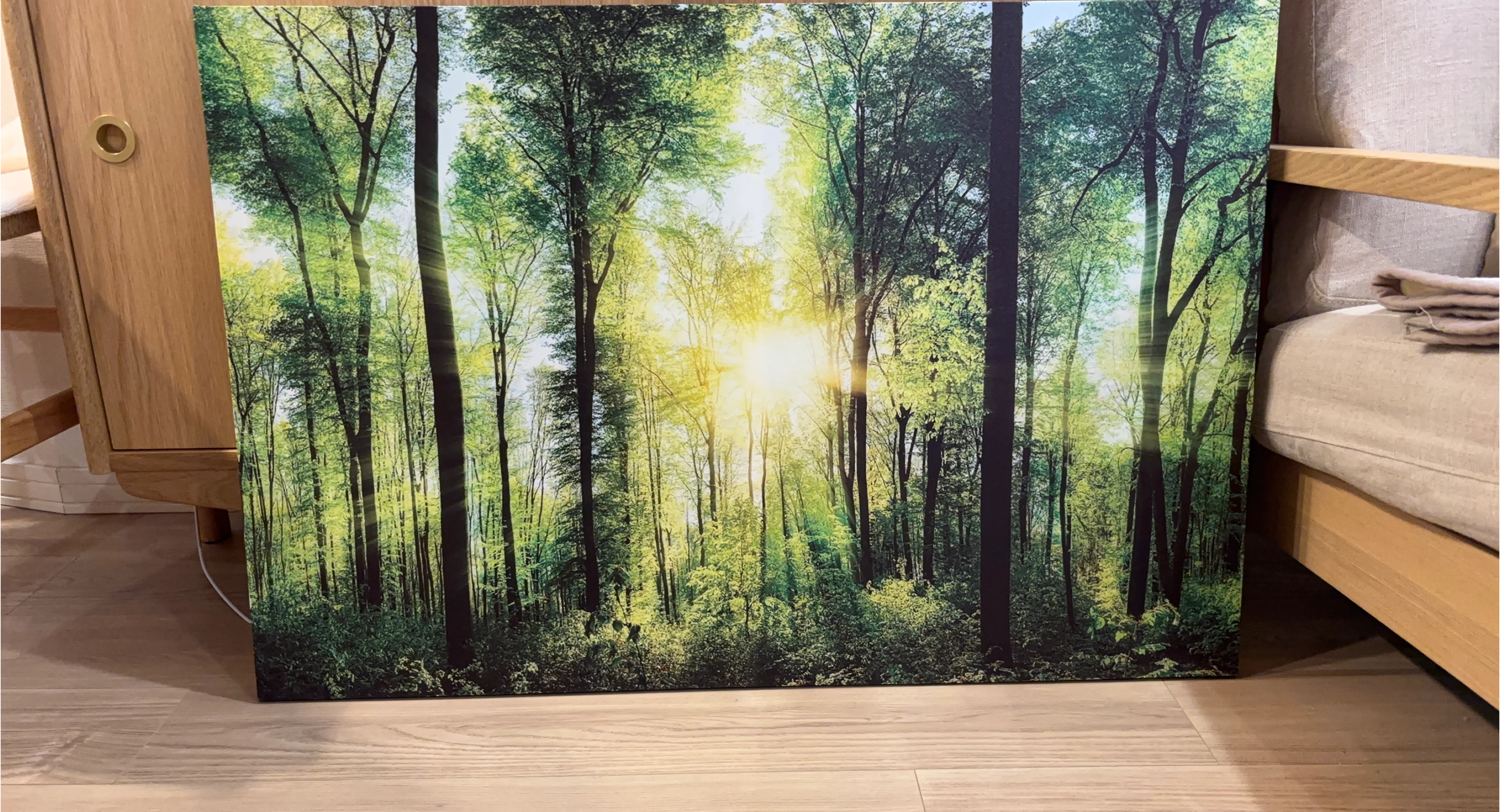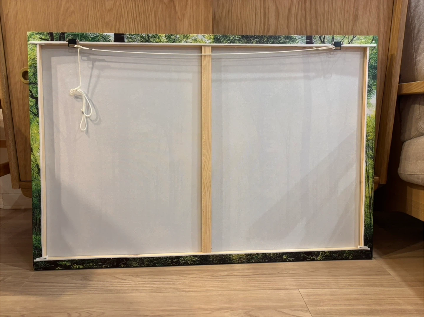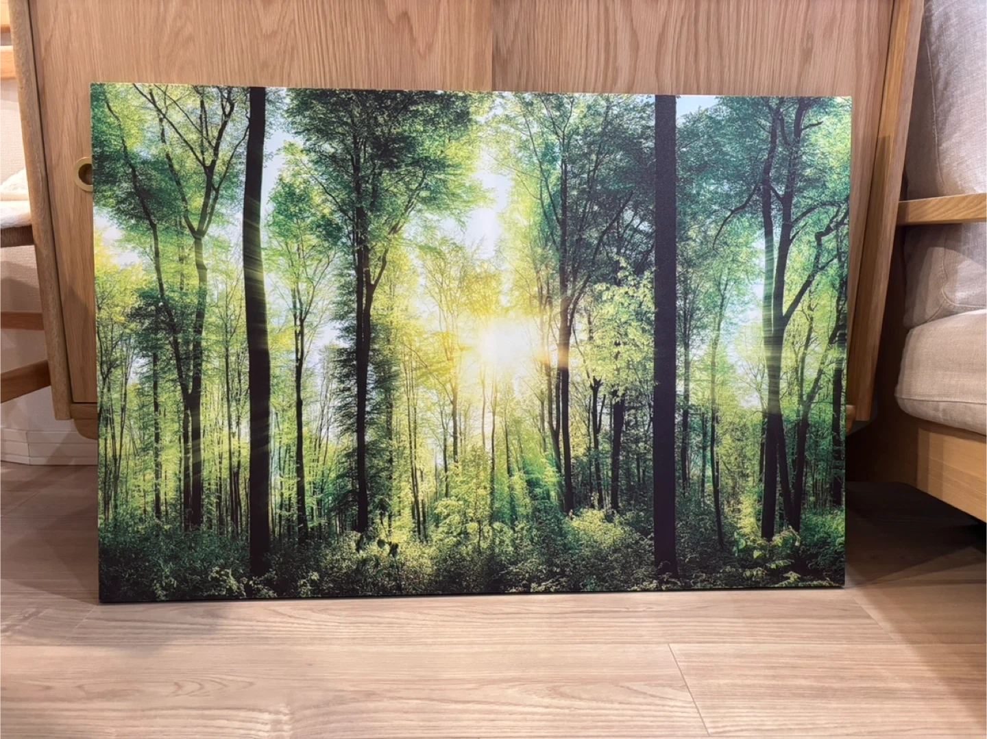 森林の写真のウォールデコです。 お部屋で緑を感じたい方に。 ・絵柄:森林、木漏れ日 ・状態:新品同様、目立つ傷や汚れなし ・横90cm,たて60cm ・定価5990円位 製品の仕様(サイトより参考に) 材質:キャンバス、木枠、フック 梱包:ボックス包装 数量:1枚 取り付け簡単:キャンバス素材は軽くて丈夫で、木枠付きの完成品セットで、取り付けが簡単です。 お渡し:桜新町駅、上町駅、中央図書館、セブンイレブン弦巻一丁目店など