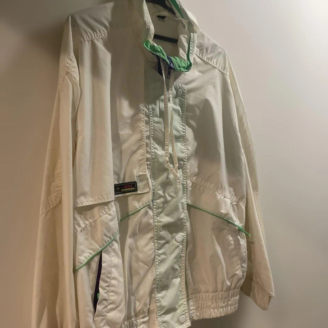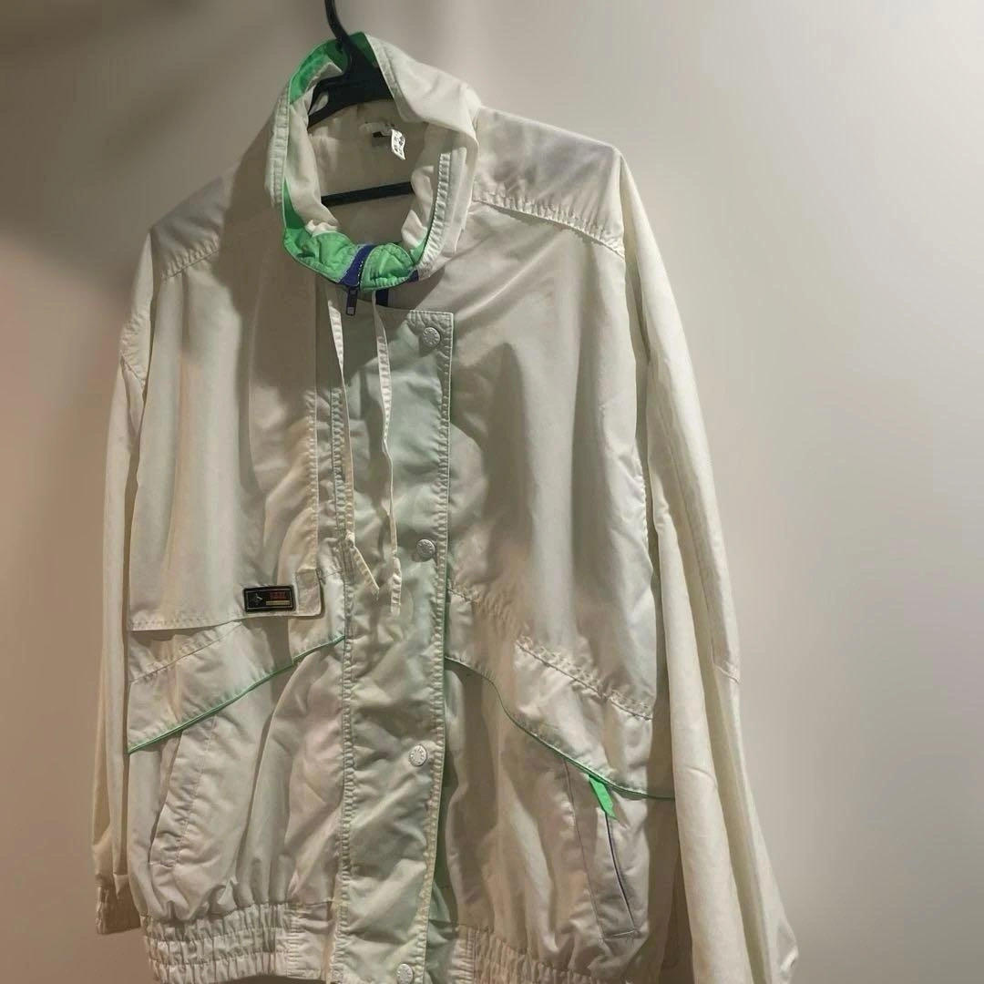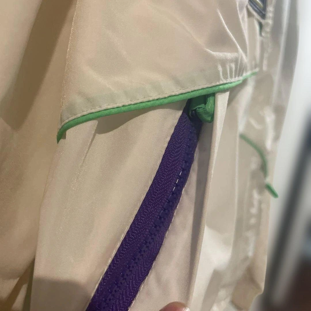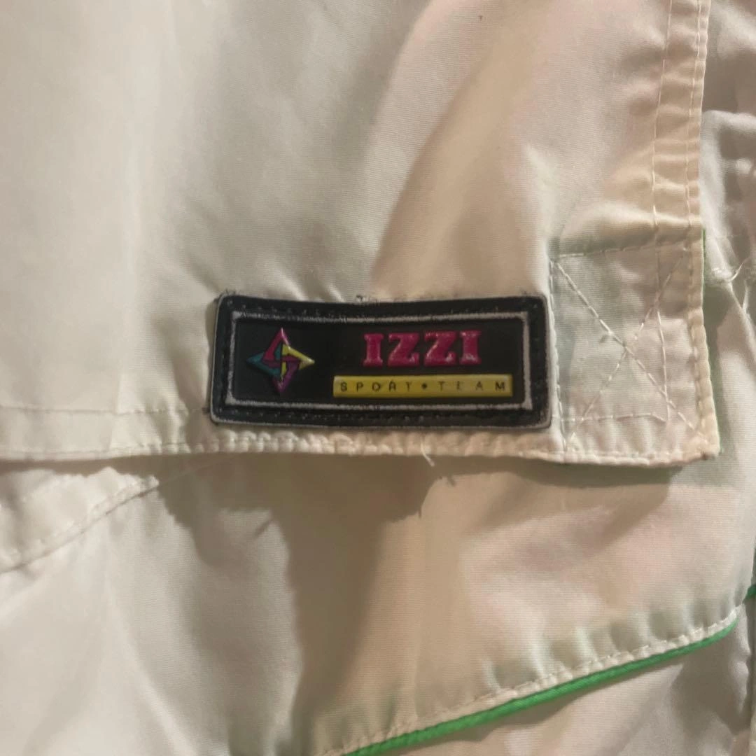 IZZI シェルジャケットです。 比翼仕立て、切り返しデザインで、トレンチコートのような雰囲気もあります。 背面はテディジャケットのような動きやすさを重視したデザイ ンです。 よく見ると凝ったデザインで、ホワイトベースですがエヴァンゲリオンのようなカラーリングも特徴です。 カラー:ホワイト、グリーン、パープル サイズ:M 素材:シェル ポリエステル100%、ライニング ナイロン100%、ニット ポリエステル100% 状態:ホワイトのため、汚れや使用感があります。内側のブランドタグの剥がれ、手首や全体的な黄ばみ、ほつれがあります。穴や破れ、チャックに問題はないので着用可能です。 他に質問等あればお気軽にコメント欄より宜しくお願い致します。 汚れ・破れ・臭いなど···あり ご希望の方はお気軽にご連絡ください。 【お渡し場所】 ファミリーマート大田千鳥3丁目店前 【取引日時】金曜•日曜以外 平日13時以降 監視カメラがある場所なので夜(22時迄)でもかまいません。上記の条件に合わせてくださる方を優先させていただきます。(早いもの勝ちではありませんのでご了承ください)