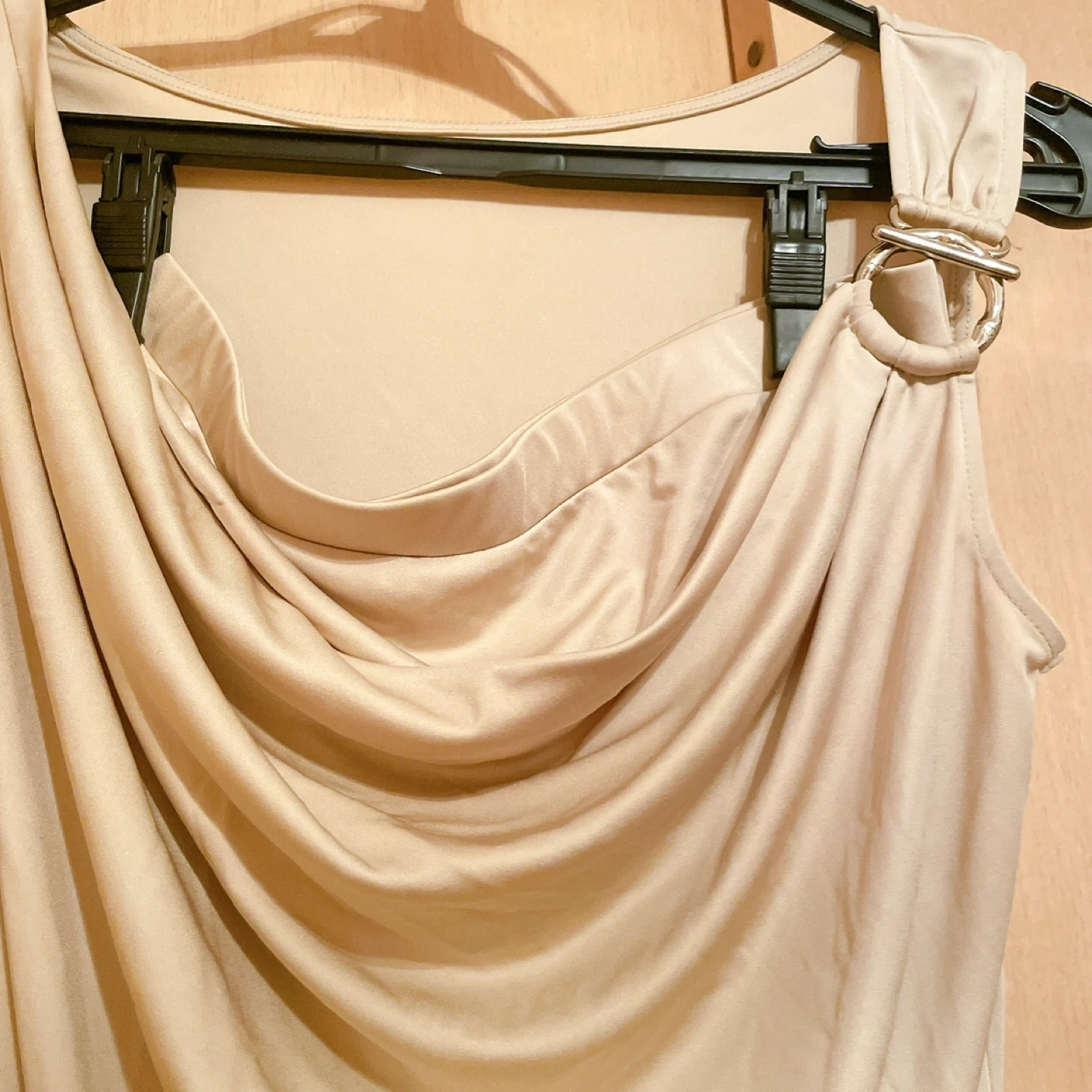 1回のみ使用のピンキーアンドタイアン ドレープトップスです。チューブトップのインナー付きで2枚セットです。 ほぼ保管状態でしたので、状態良いです。 サイズ38 柄・デザイン···無地 カラー···シャンパンベージュ 袖丈···袖なし、ノースリーブ 季節感···春、夏、秋 ピンキー&ダイアン、pinky&dianne、タンクトップ、ベアトップ、ゴールド、金具、金属、光沢、ツルツル、シルク、セクシー、エレガント、パーティ、結婚式、デート