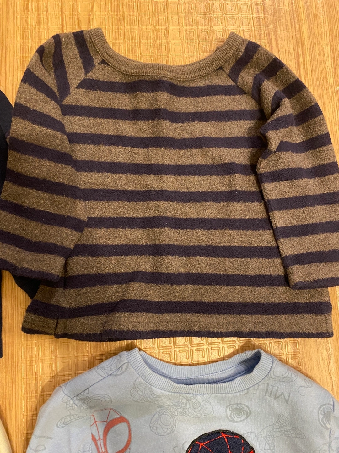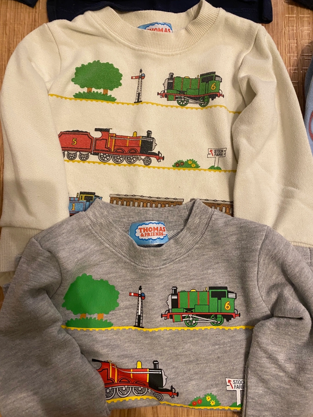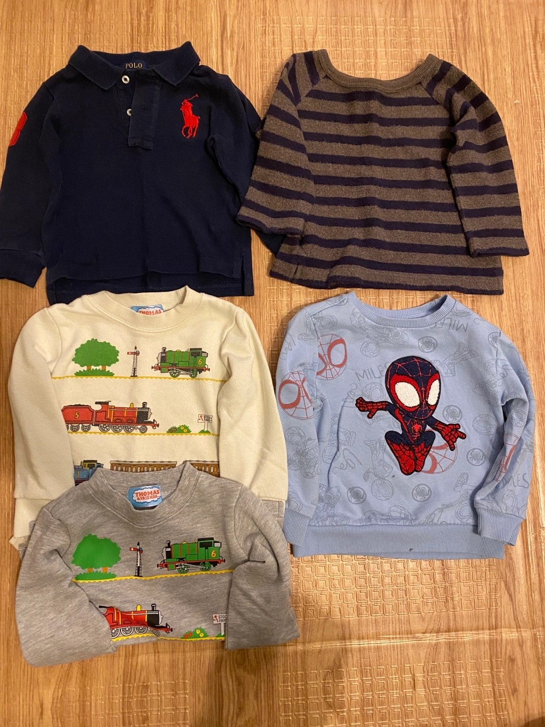 トーマスの洋服は2着とも100cm 灰色は未使用品です。 マーベルのスピンの洋服は2歳用 海外で購入しました。汚れがあるので写真でご確認ください。 茶色のシマシマセーターは90cm表記ですが、子供が100cmの時に着用できてました。 POLOの洋服は18M表記です。 中古品のためご理解ある方にお譲りしたいと思います。よろしくお願いいたします。