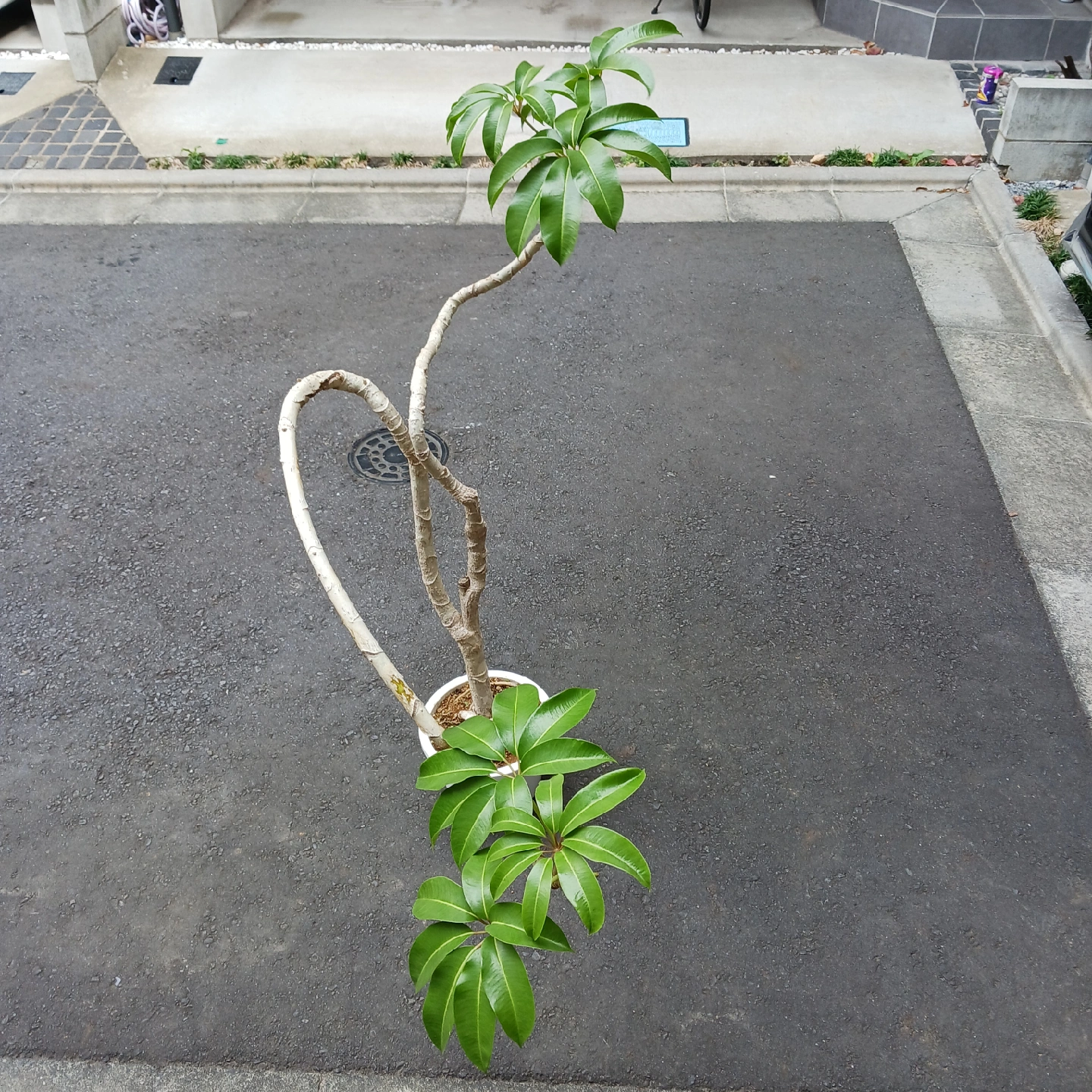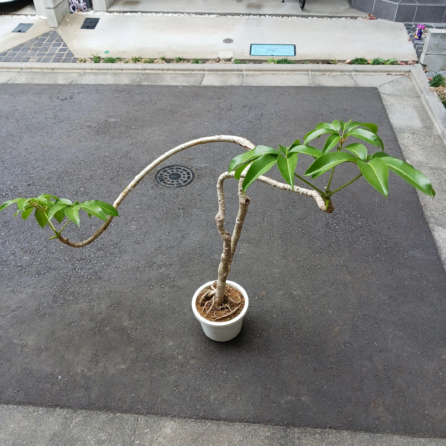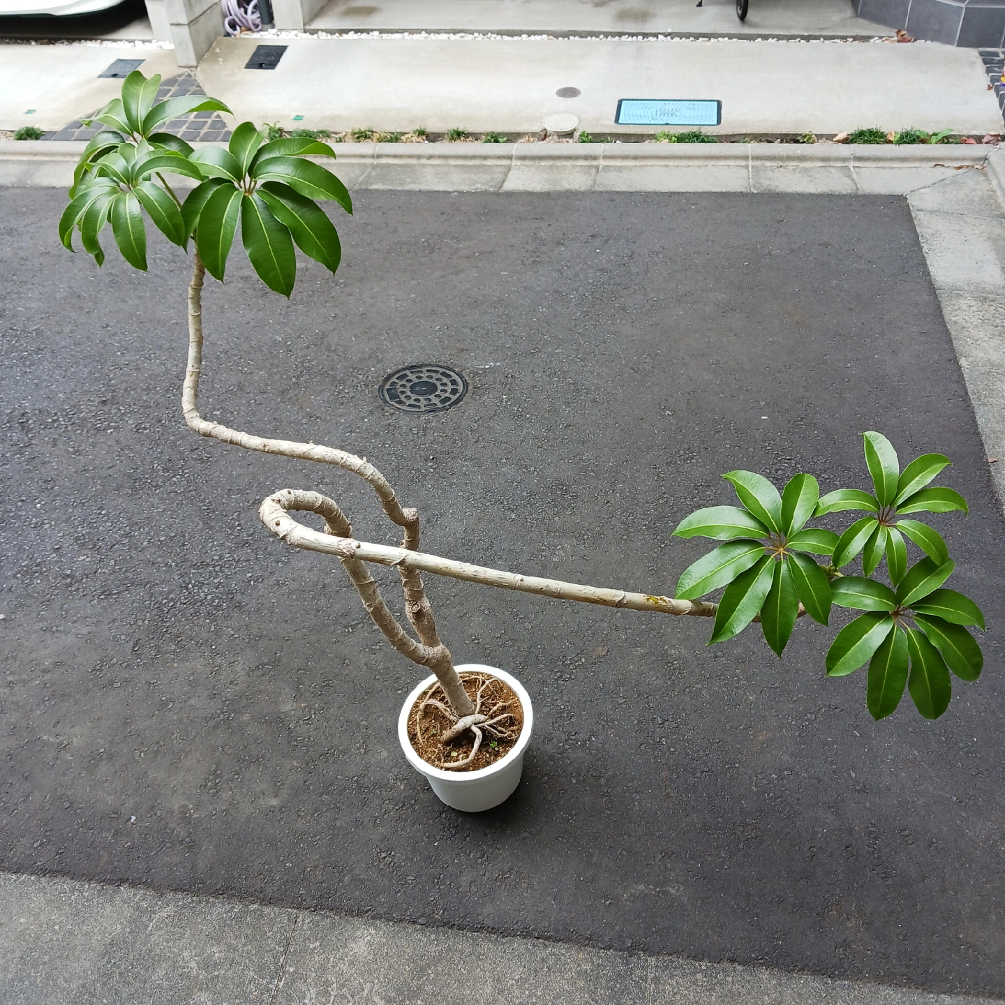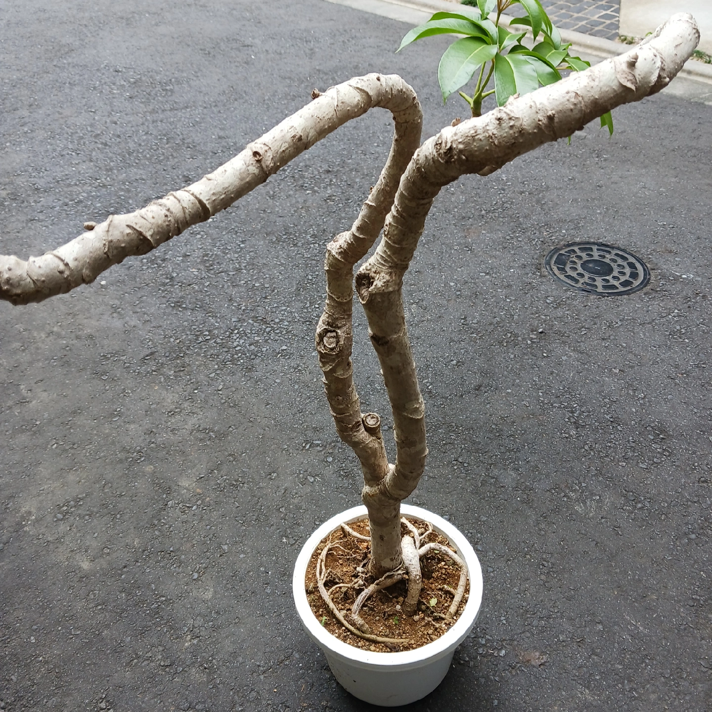 あたたかさ左右に曲がる幹が特徴。個性的なもの を探している方におすすめです 《鉢サイズ》 号鉢(直径cm × 高さcm) 白のプラ鉢 《植物サイズ目安(鉢込み)》 横幅:約143cm × 高さ:約120cm 高さ80cmくらいのところから左右に広がってます 《撮影日》 2025年10月10日 《置き場所》 ・風通しのよい室内または屋外の明るい場所 《水やり》 ・土の中までしっかり乾いてから、たっぷりと与えてください ・冬場に置く場所の温度が15℃以下になる場合は、水やり回数を減らし、やや乾燥気味に管理してください