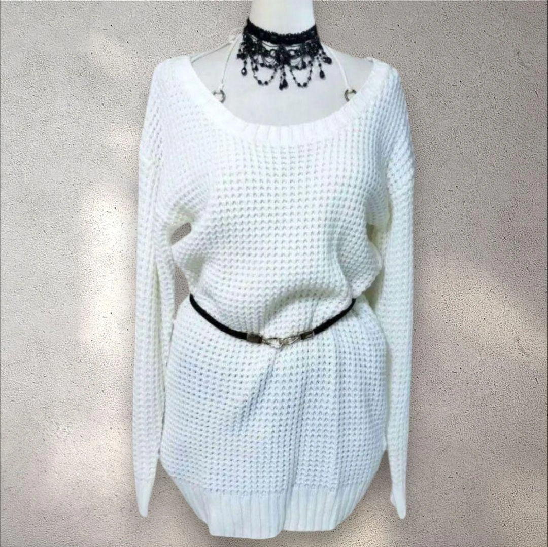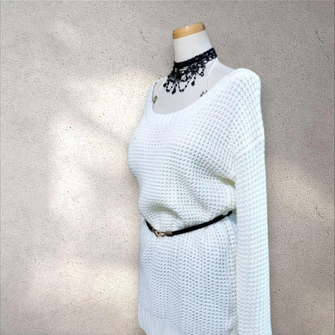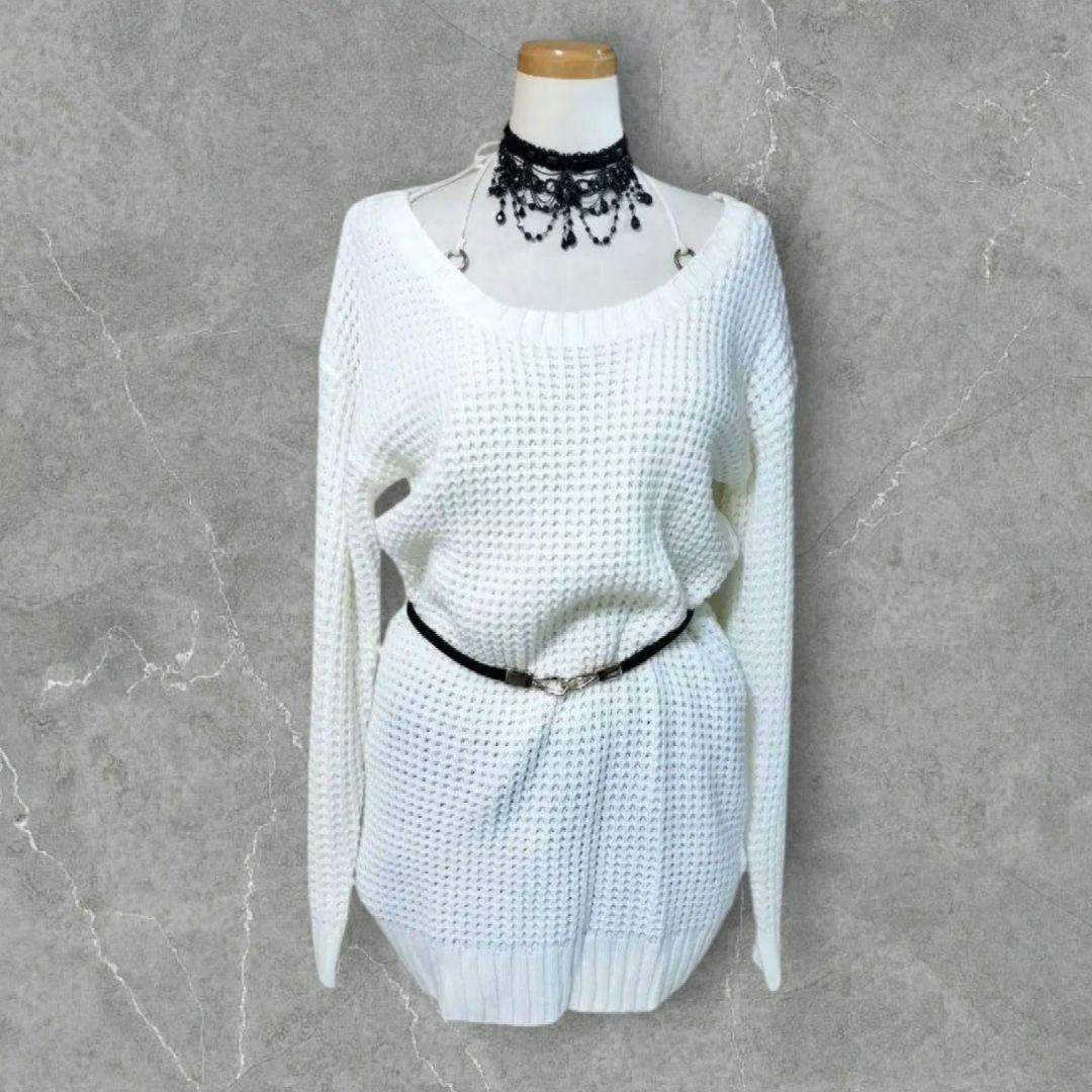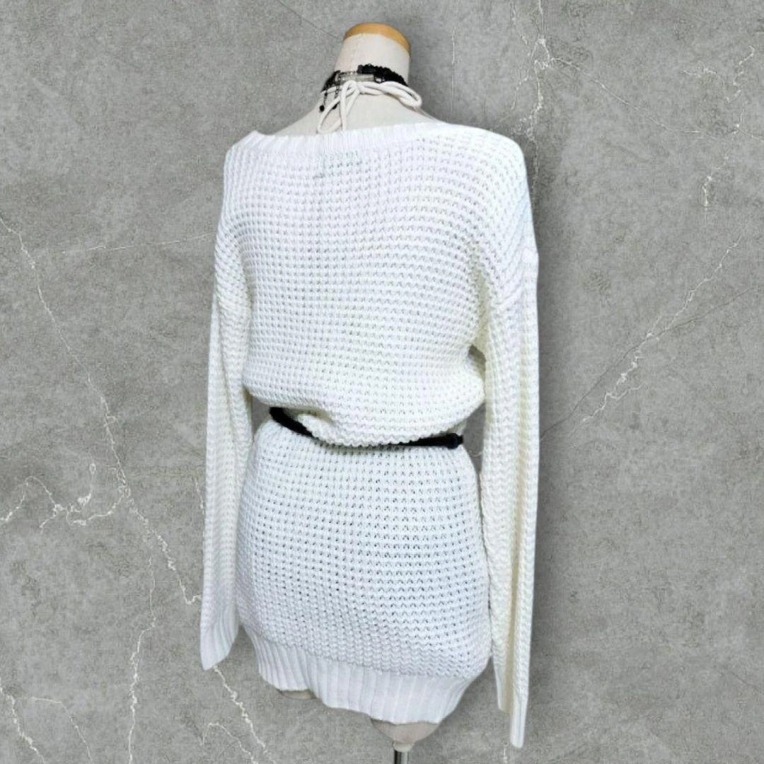 11/30までの出品!■ホワイト ニットセーターワンピベルト付
