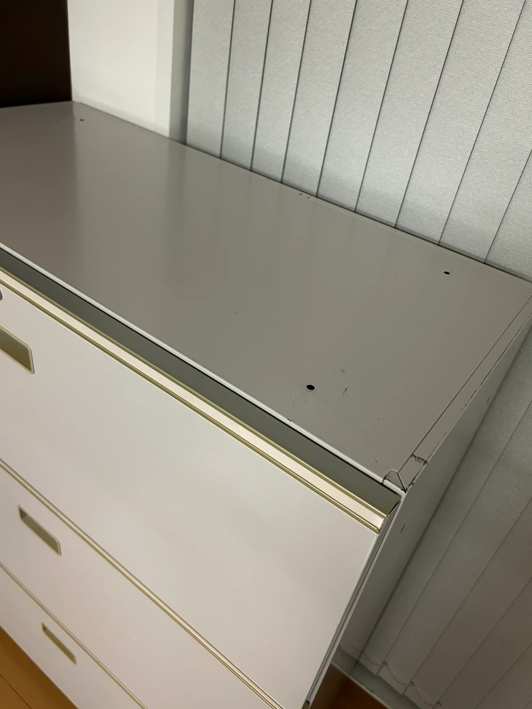 ファイリングキャビネット3台セット ・メーカー:オカムラ ・色:ライトグレー ・3段(鍵付き/仕切り付) ・使用感、小さなキズあり(目立った傷や汚れはありません) ・サイズ:90 × 45 × 110 (センチ) ・3台セット 画像のキャビネットが3台あります。3台セットでお譲りします。 3台すべてのキャビネットの付属(鍵/仕切り板)が揃っています。 書類が大量に収納できるオフィス家具3台セット。 大量の書類や雑貨、衣類までも瞬時に収まります◎新年に向けてスッキリさせたい方にも◎ 中古品であることご了承ください。 スピーディーな取引を希望します。 ※ 12月16日までの日程でご都合が合う方、取りに来ていただける方限定です。 指定場所はお取引決定後にご連絡します。取りに来ていただける方限定。 複数のお申し込み大歓迎です。 先着順です。お返事遅い方、こちらの質問にご回答いただけない方は、次の方にお譲りする場合もございますのでご了承ください。 ご不明点があればお気軽にご連絡ください。