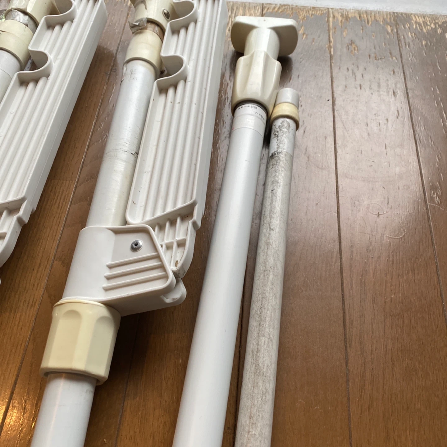 使用約5年の室内用つっぱり物干しです。 経年劣化や日焼け・サビなどあります。物干し竿は一本しかございません。 引っ越しのためお譲りします。 ■ 状態 ・プラスチック部分に日焼けあり ・金属ポールにサビ、汚れあり(写真参照) ・動作には特に問題なし ▼ 12/21に取りに来ていただける方を優先させていただきます。 自宅前での非対面受け渡しも可能です。 どうぞよろしくお願いいたします。